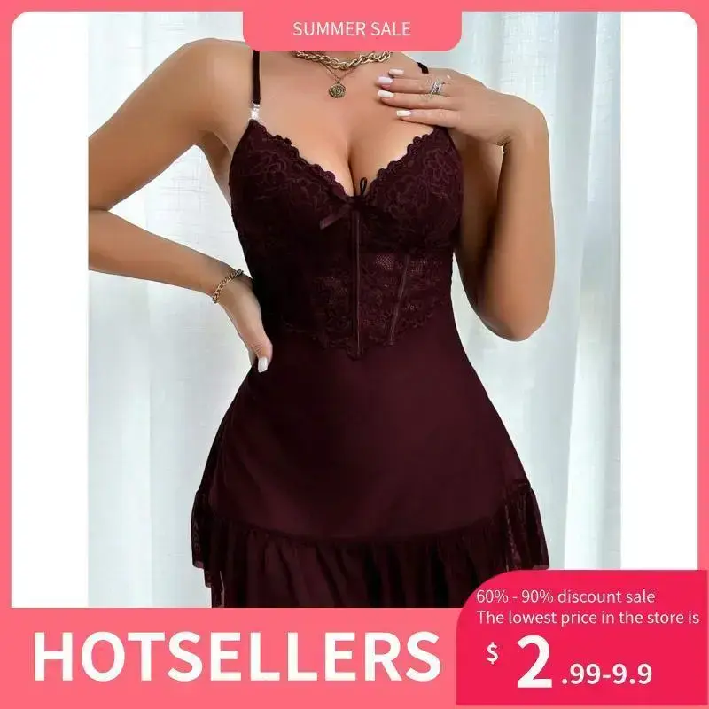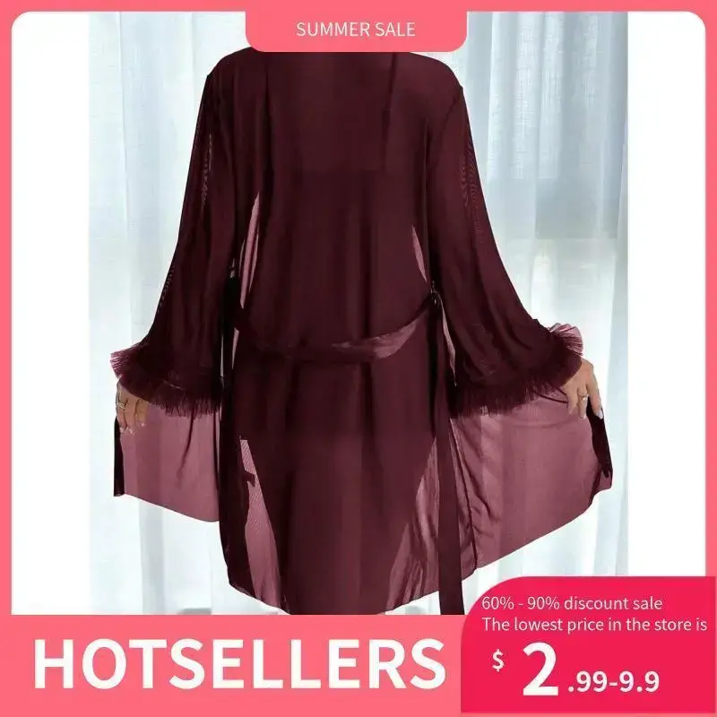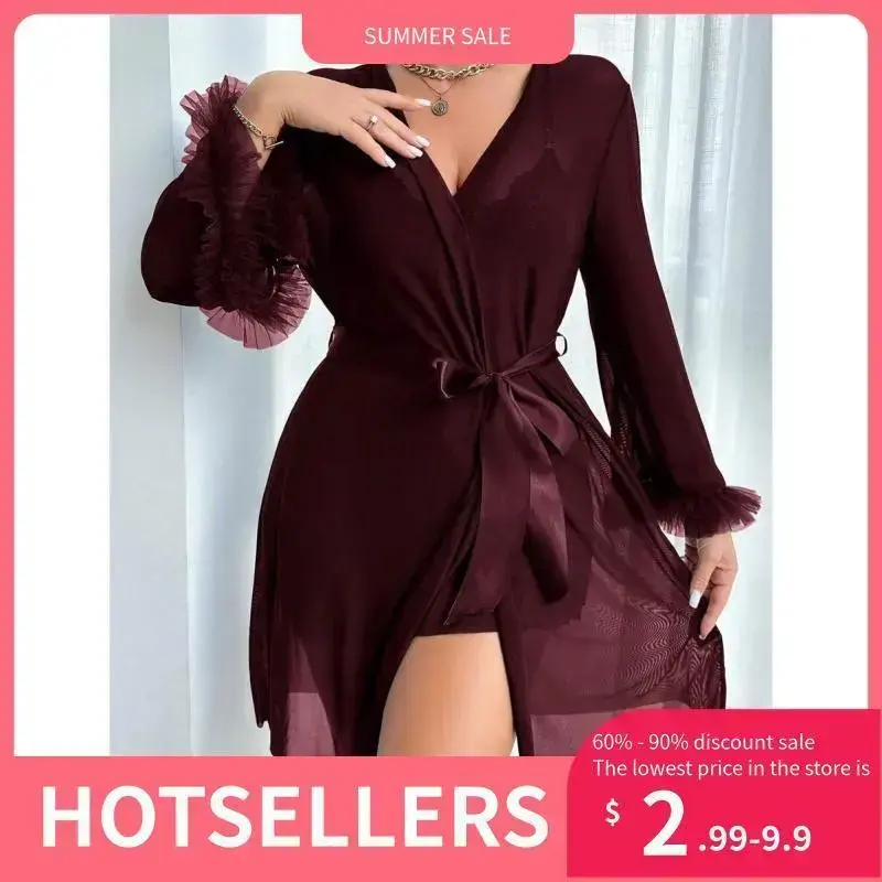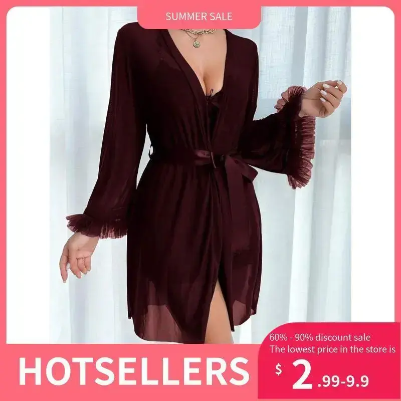 Season:All, Spring/Summer/Details:Bow, Contrast Lace, Sheer/Pattern Type:Plain/Style:Sexy/Color:Maroon/Type:Dress Sets/Neckline:Spaghetti Strap/Outside sleeve length: long sleeve/Dresses Sleeve Length:Sleeveless/Sleeve Type:Flare Sleeve/Outerwear Length:Thigh Length/Fit Type:Regular Fit/Number of Pieces:2 Piece Set/Waist Line:High Waist/Sheer:Semi-Sheer/Fabric Elasticity:Medium Stretch/Underwear & Sleepwear Users:Maternity, Bridesmaid/Festivals:Valentine's Day/Dresses & Outerwear Composition:5% Elastane,95% Polyester/Scenes:Private Party/Care Instructions:Hand wash or professional dry clean/Belt:Yes/Dresses length: mini dress/Dresses Material:Mesh Fabric/Outerwear Placket Type:Placket