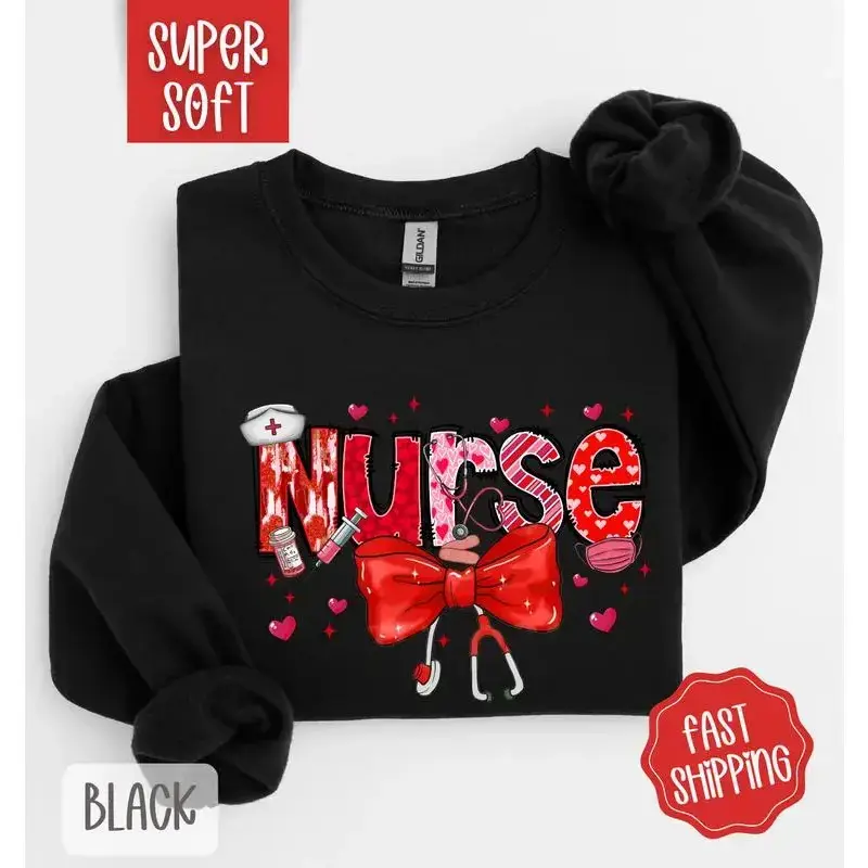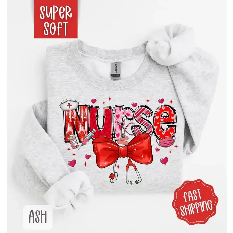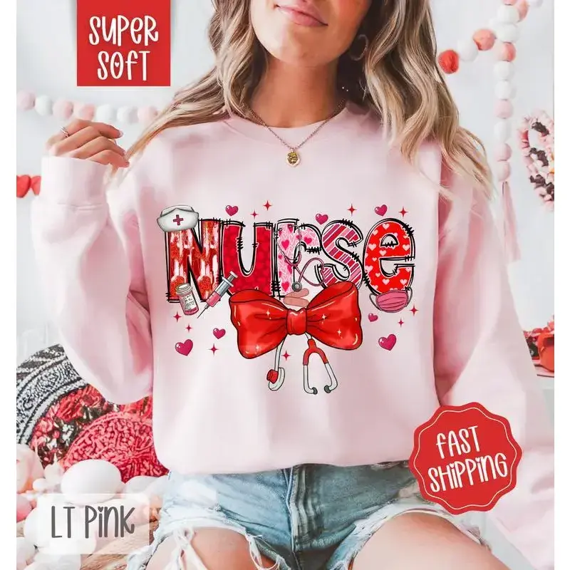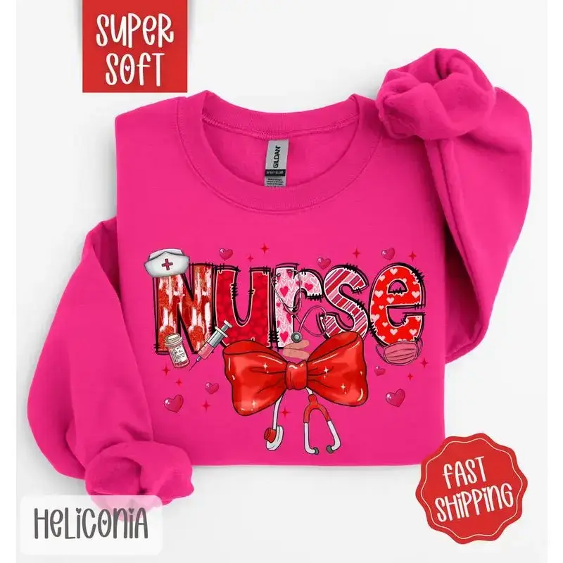 Valentine Nurse Sweatshirt, Valentine's Day Crewneck for Nurse, Cute Nurse Sweater, RN Sweatshirt