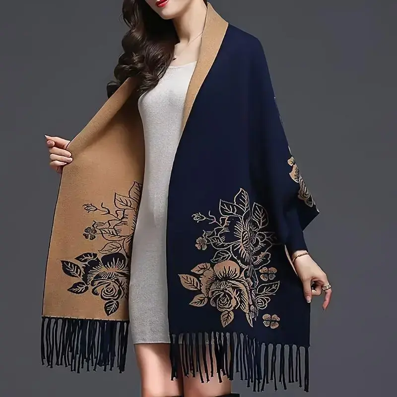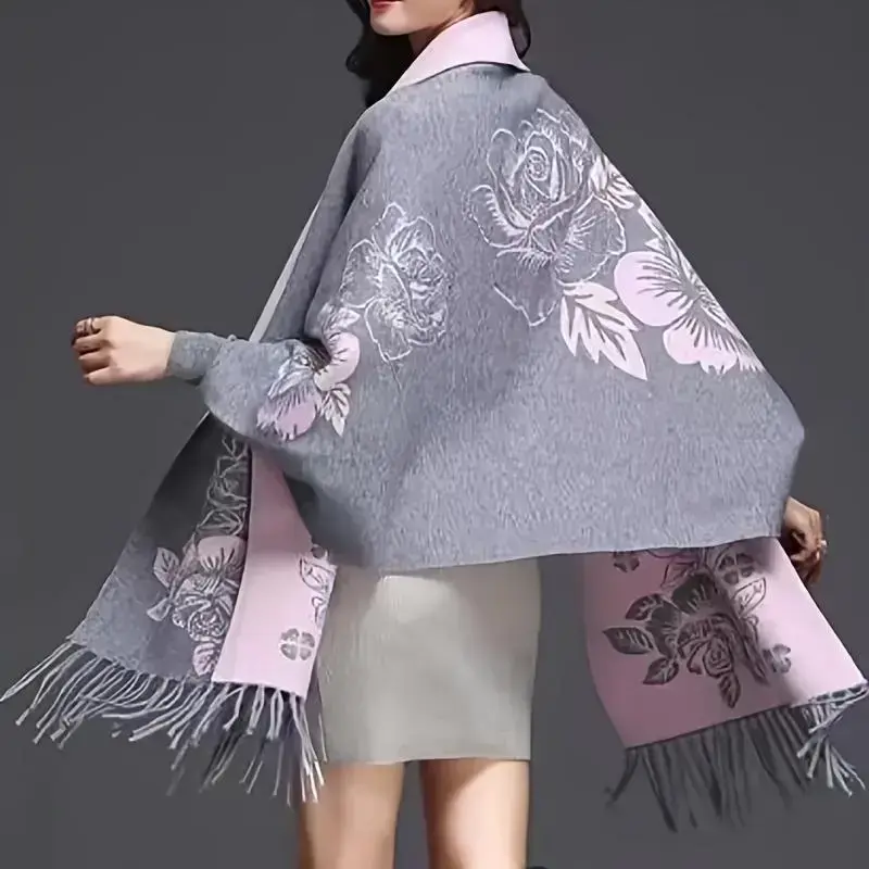 Female Autumn And Winter Thick Warm Shawl Coat Dual-Use Wearable with Cheongsam Retro Cloak Coat with Sleeves