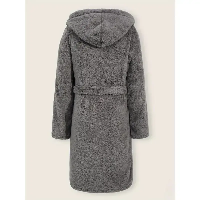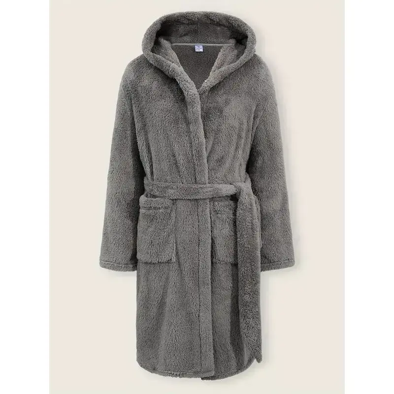 Details: Belt Pattern: Solid color Sheer: No Fabric: Slight Stretch Collar Style: Hooded Type: Robe set Season: All Operation Instruction: Machine wash or professional dry clean Style: Casual Material: Polyester Fit Type: Regular Composition: 100% Polyester Weaving Method: Knit Fabric Item ID: JN. 712717