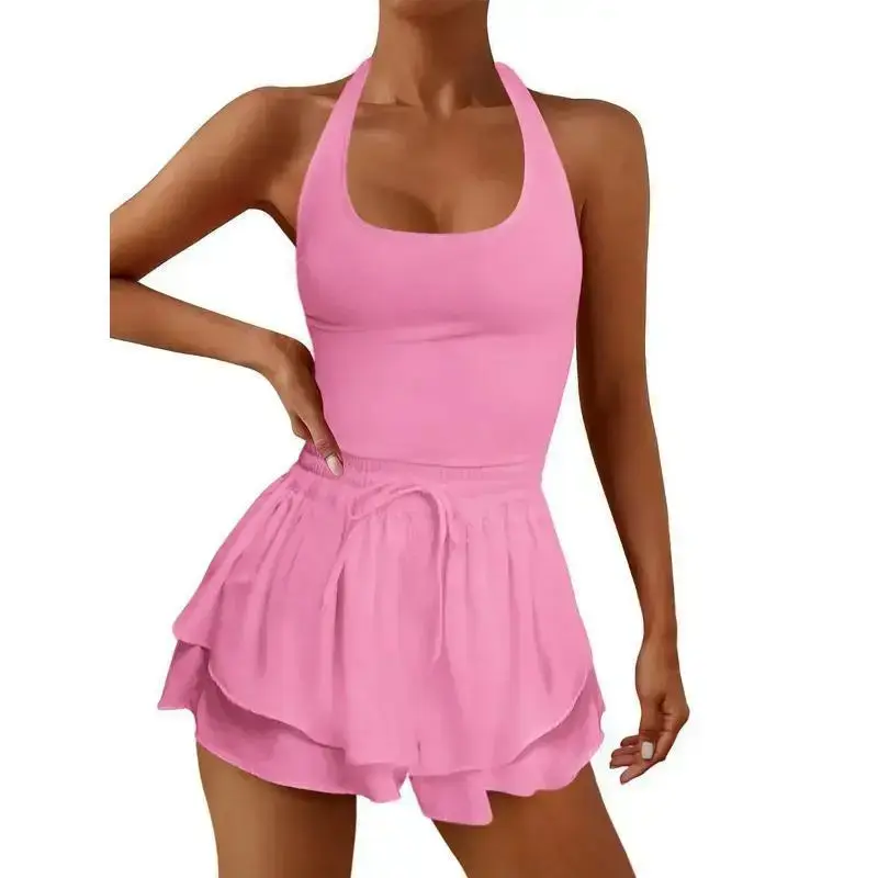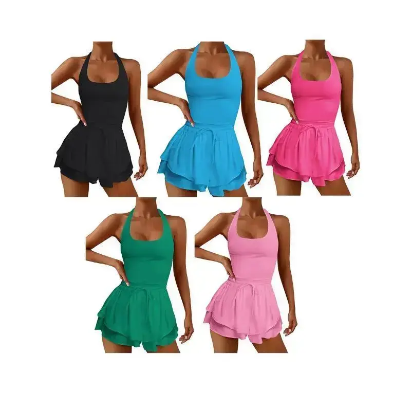 athletic dress Women Running Workout Rompers Jumpsuits Gym Yoga Clothes Athletic Solid Color Sleeveless Cross Backless Tennis Playsuits