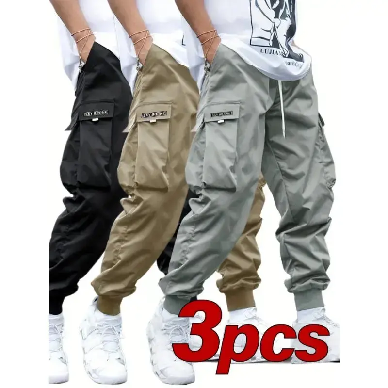 Men's Casual Cargo Pants Set ✨ Elevate your outdoor style with our Men's Casual Letter Pattern Cargo Pants Set of 3. Crafted from woven polyester, these mid-rise trousers feature a drawstring waist, belt loop, and pockets. Perfect for hiking and outdoor activities, these joggers offer a regular fit and non-stretch fabric. 🌿