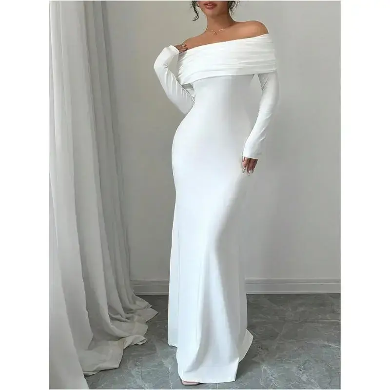 Women's Long Sleeve Off The Shoulder Bodycon Dress Elegant Maxi Dress Cocktail Prom Dresses Fabric Formal easter prom dress