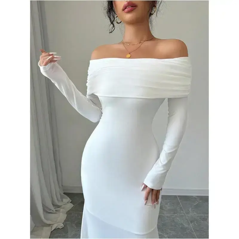 Women's Long Sleeve Off The Shoulder Bodycon Dress ✨ Elegant Maxi Dress ✨ This women's long sleeve off the shoulder bodycon dress is perfect for formal occasions. It features a sleek bodycon fit and an elegant off-the-shoulder design. Ideal for cocktail parties, proms, and Easter events. The dress is made of formal fabric, ensuring a sophisticated look. This dress is a versatile choice for any formal event.