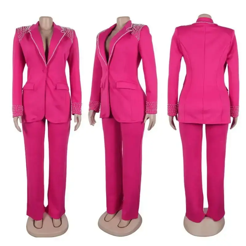 Purple Two - Piece Suit Women's Fashion Trend, Pearl - Embellished Blazer & Flared Trousers, Ideal for Stylish Outings Womenswear Basic Chic Elegant