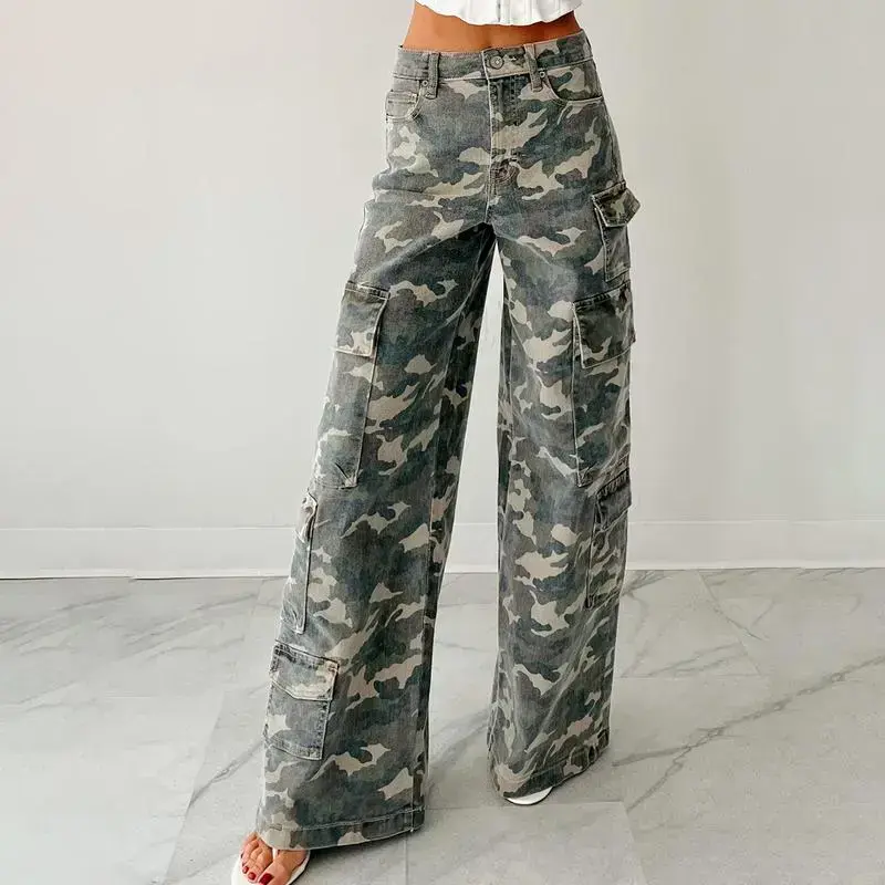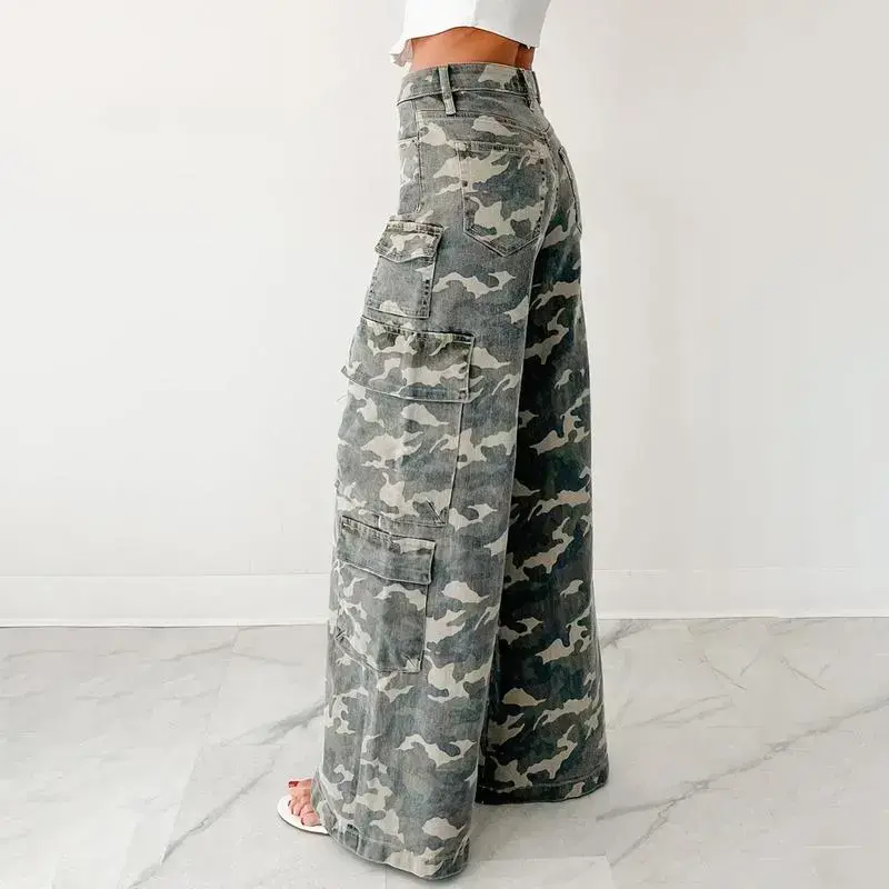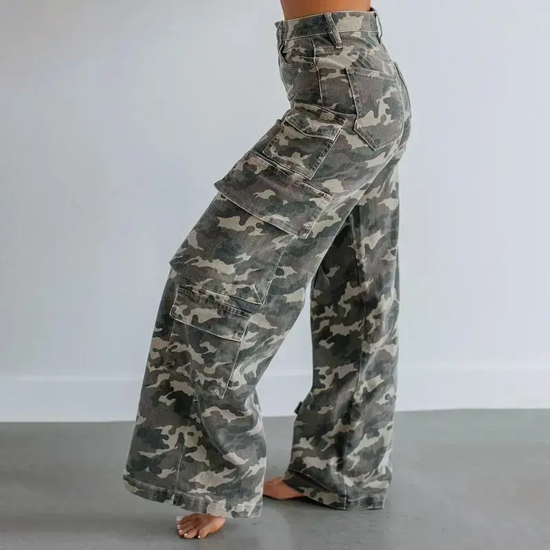 Casual Camouflage Tooling Straight Women's Old Jeans