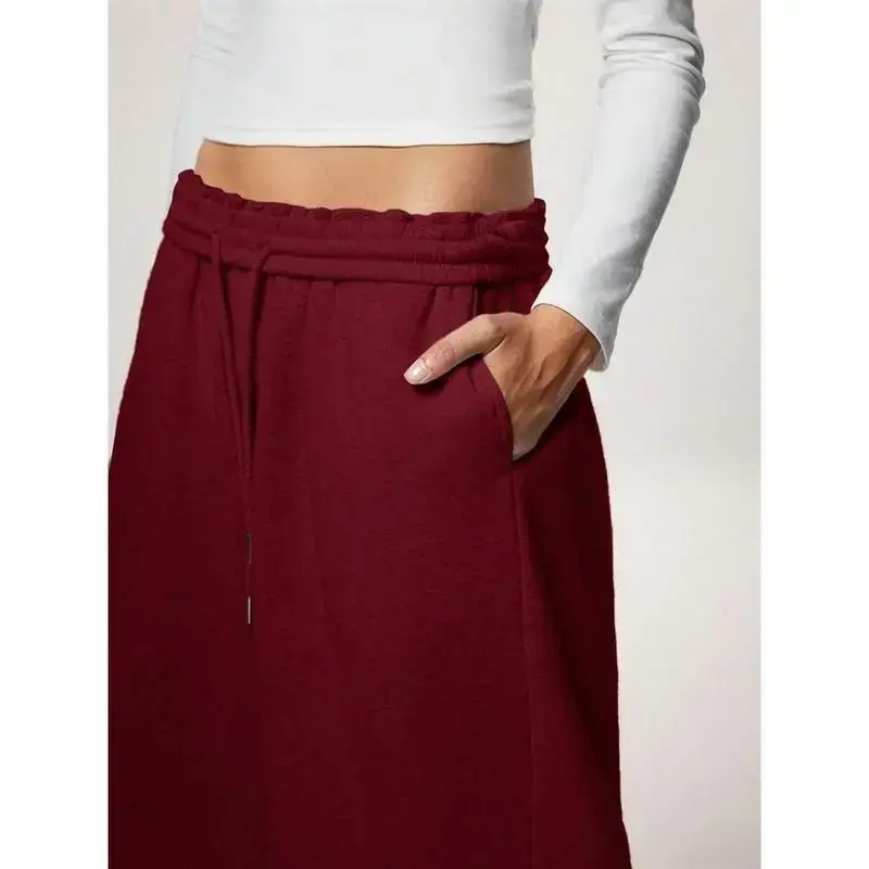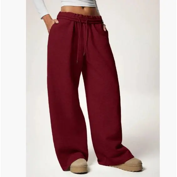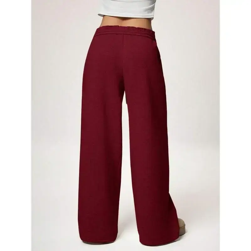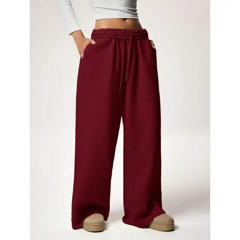 Lined? :Unlined Festivals:Independence Day Lined For Added Warmth:No Pattern Type:Plain Closure Type:Drawstring Waist Pockets:No Details:Pocket, Drawstring Color:Burgundy Type:Wide Leg Waist Line:Low Waist Length:Extra Long Fit Type:Loose Temperature:Late Fall (10-17 ℃ /50-63 ℉ ) Fabric Elasticity:Slight Stretch Material:Knitted Fabric Composition:100% Polyester Care Instructions:Machine wash or professional dry clean Sheer:No
