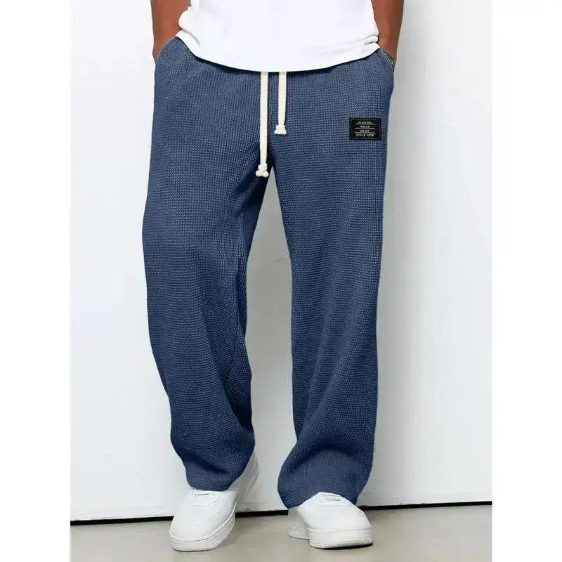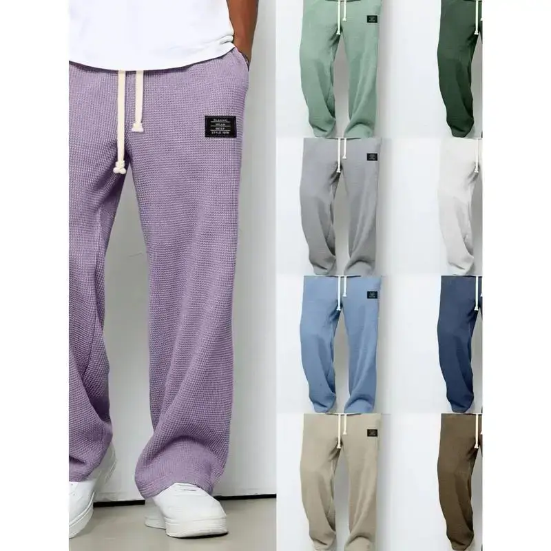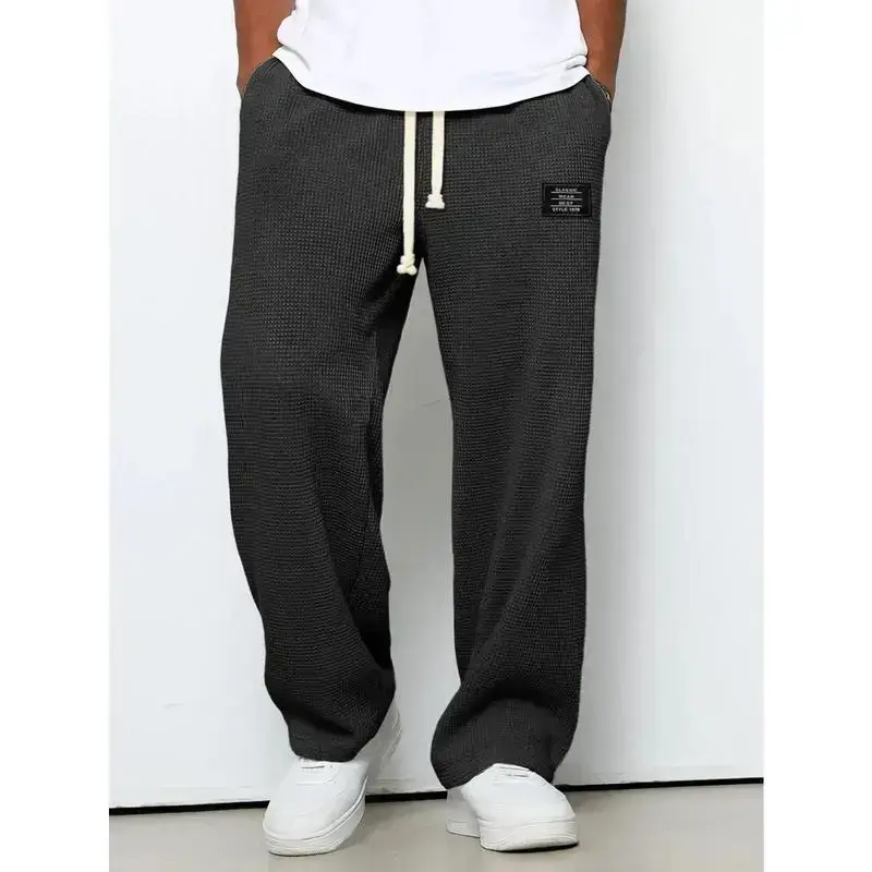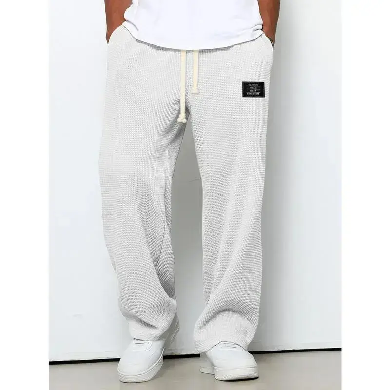 Men's mid waist straight tube waffle knit sports pants - wrinkle free casual pants, full body waffle texture, loose fit, machine washable and pocket | gym, office, travel | gray/white (no customization required), men's shoes, men's sportswear,