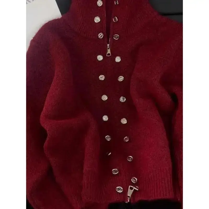 Luxury Fluffy Knitted Cardigan Sweater Design Double Breasted Sweater Coat Women Autumn High-end Lazy Zipper 2000s Y2k Knit Top Can be used with raincoat
