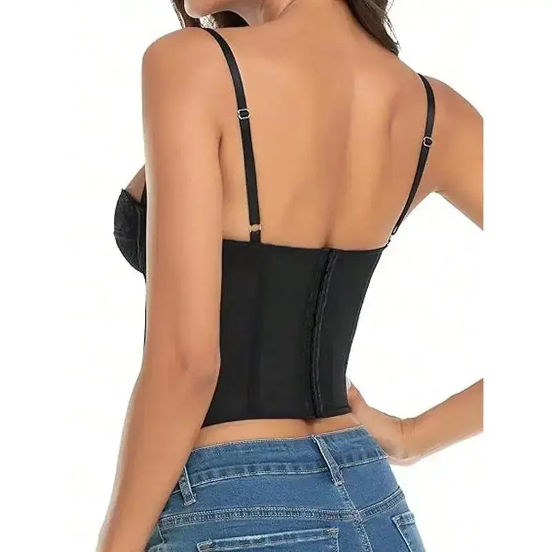 SIZING TIP: For an optimal shaping effect, the shapewear should feel tight around your body. If you prefer a more comfortable, everyday fit, we recommend sizing up./Pattern Type:Plain/Details:Asymmetrical, Contrast Lace, Lace Up/Color:Black/Type:Tops/Fabric Elasticity:Slight Stretch/Material:Lace/Composition:80% Polyester, 20% Elastane/Care Instructions:Hand wash,do not dry clean/Body:Unlined/Chest pad:No Padding