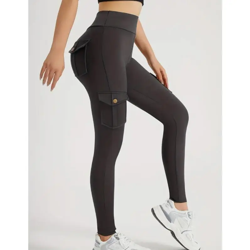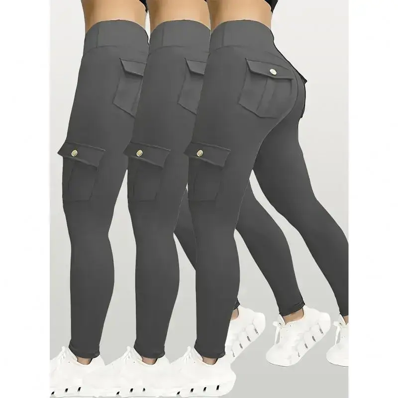 3pcs Women's High-Waisted Yoga Pants with Hip Lift & Pockets - 90% Polyester 10% Elastane Stretchy Workout Leggings, Solid Color Extra-Long Tights for Running, Exercise, Gym - All-Season Comfort, Versatile Activewear | S