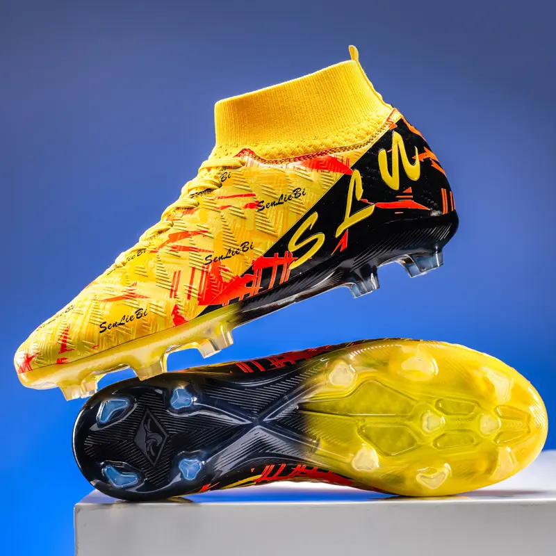 Men's High-Top Soccer Shoes-Professional Training and Race Shoes, Spike, Breathable Cloth Lining, Durable TPU Sole
