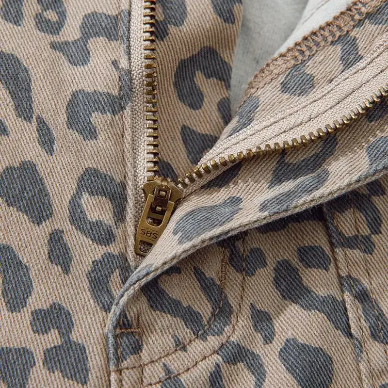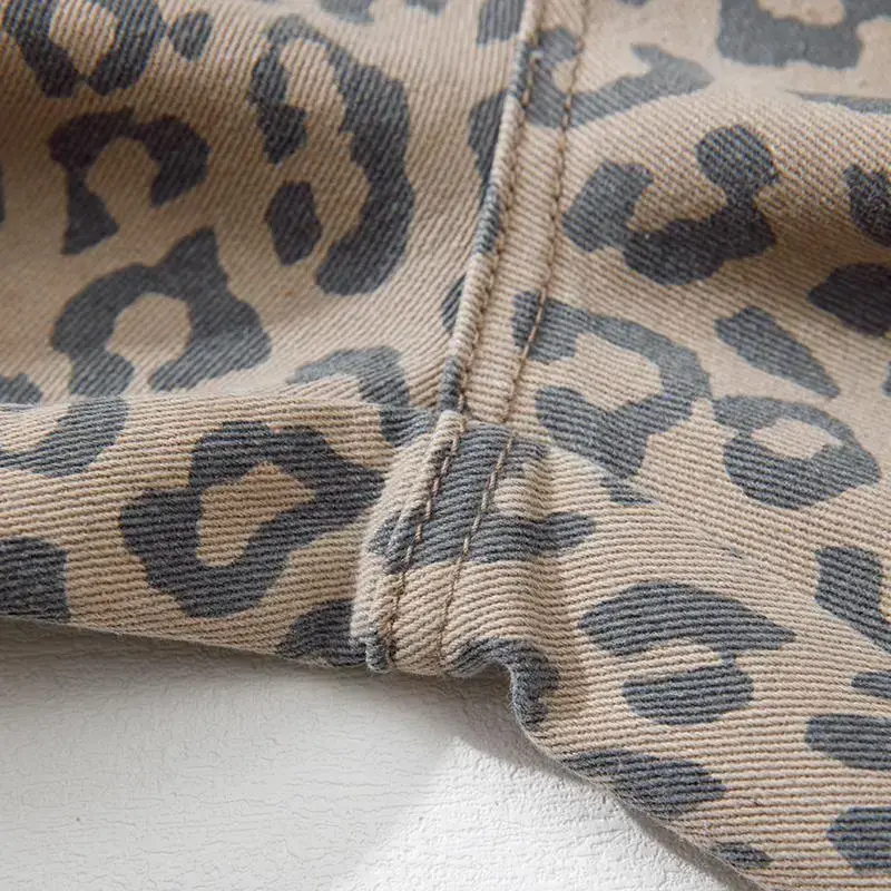 This leopard jeans diffuses a kind of wild fashion sense. Design in a laid-back style, these women’s barrel jeans for fall are relaxed fit and flattering. Side pockets design is practical and decorative. Women’s jeans with drawstring waist are very comfy while looking fashion-forward.