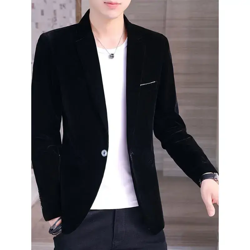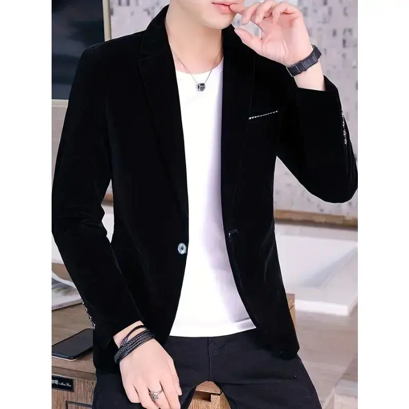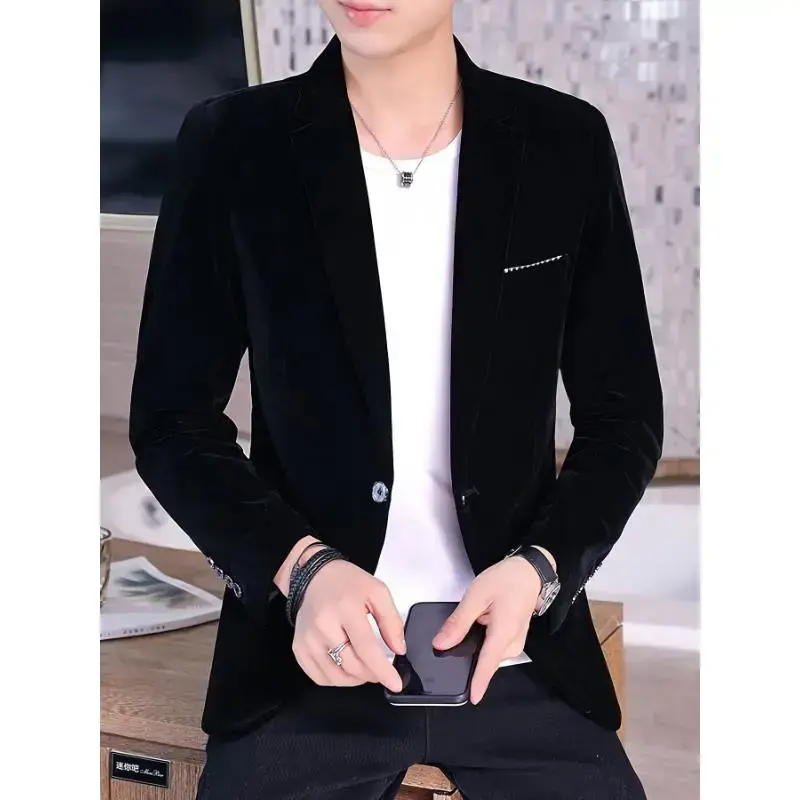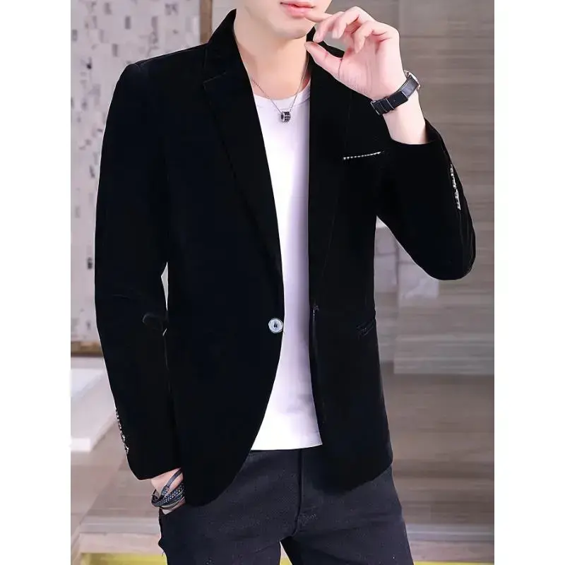 Men's Premium Velvet Textured Polyester Blazer Regular Fit Solid Color Classic Lapel Long Sleeve Jacket With Contrast Details Elegant Suitable For Formal Events Office Gatherings Dinner Parties And Weekend Weddings Black Beige Opt