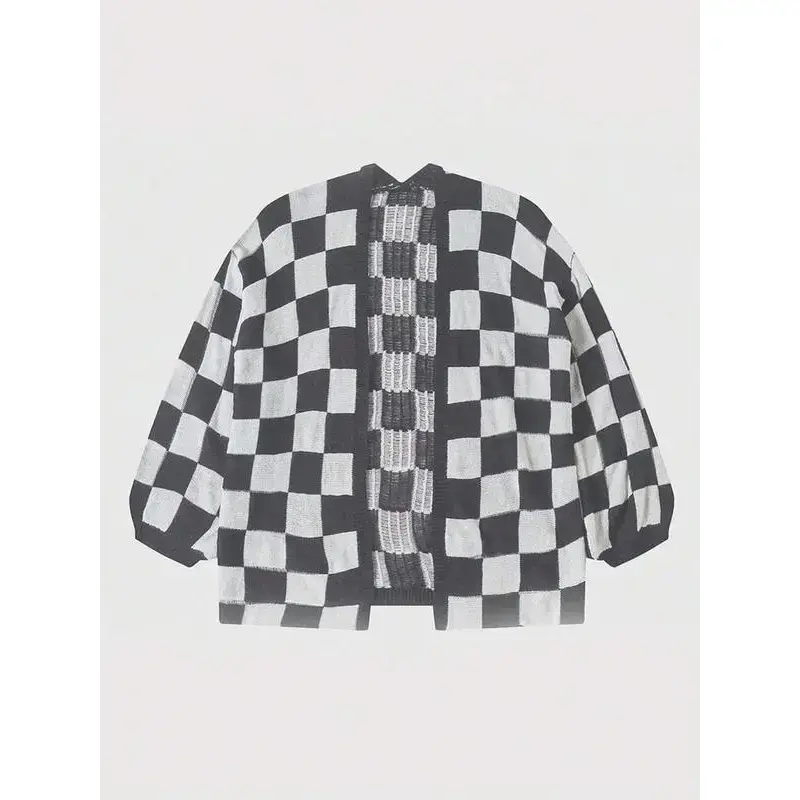 【Bishop Sleeve Charm】: Elevate your wardrobe with the unique bishop sleeves, providing a touch of elegance and flair perfect for any occasion. 【Checkerboard Appeal】: Stand out in a crowd with a striking black and white checkerboard pattern that adds a modern twist to the classic cardigan. 【Knitwear Comfort】: Crafted from jacquard knits, this cardigan promises warmth and softness, ideal for transitioning between seasons. 【Slight Stretch Ease】: Enjoy a comfortable fit thanks to the slight stretch material, allowing the cardigan to adapt to your body without constriction. 【Wash Freedom】: Experience the convenience of effortless care with the wash-free feature, saving you time and preserving the cardigan's quality.