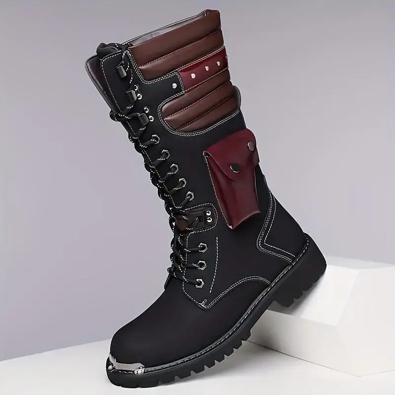 Outdoor Men's Thick Bottom Non-Slip Boots Fashion All-Match High-Top Lace-up Motorcycle Boots