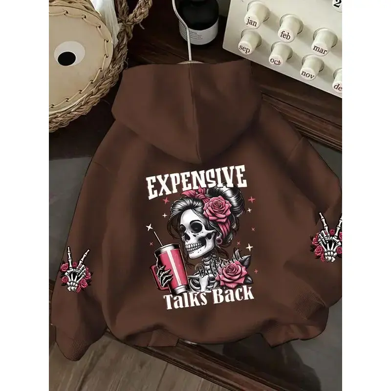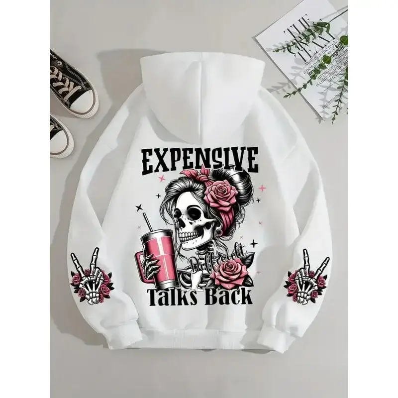 Women's Halloween Skull Hoodie with Kangaroo Pocket, Long Sleeve Drawstring Pullover, Loose Fit Fall Winter Fashion Sweatshirt
