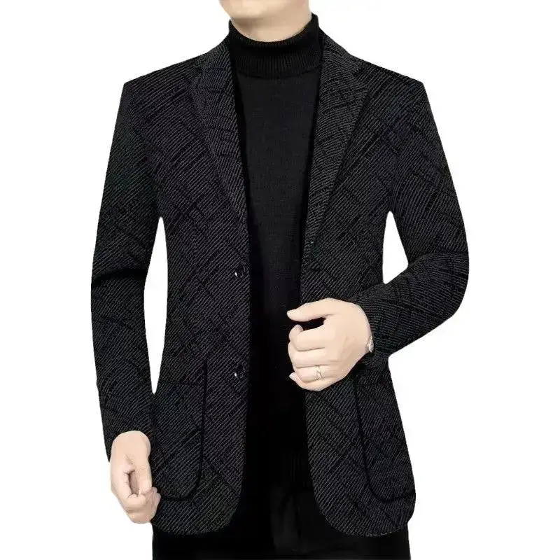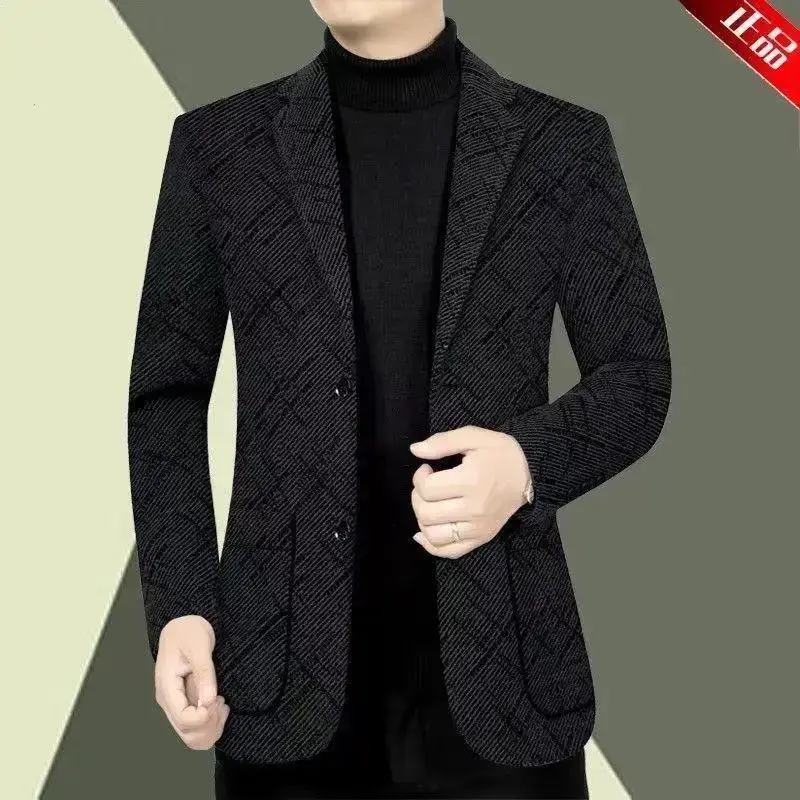 2025 Heavyweight Thickened Suit Jacket for Men Beige Plain Long Sleeve Autumn Winter New Casual Woolen Thickened Jacket for Middle-aged Men Dad Jacket Menswear