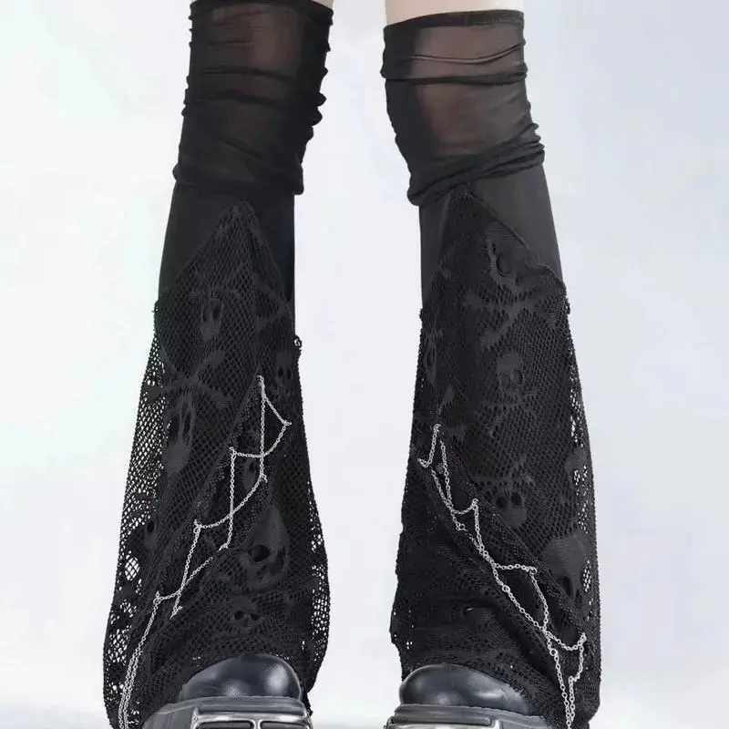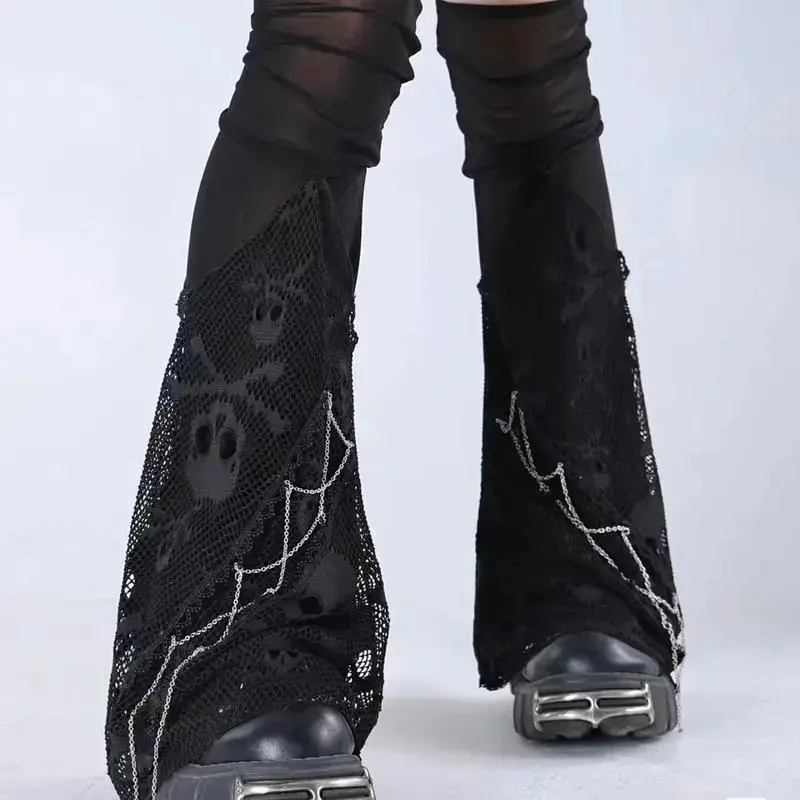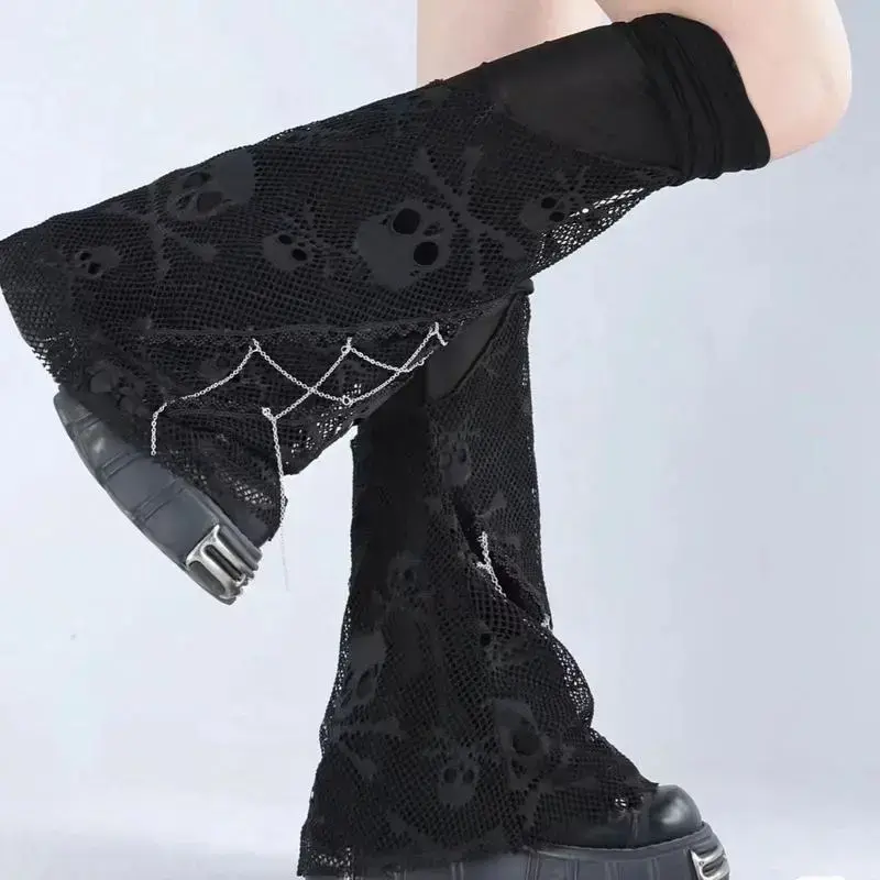 Warm Socks Fashion Socks Y2K Style Punk Style Black Skull Pattern Mesh Knee-High Long Socks Slim Fit Flared Leggings