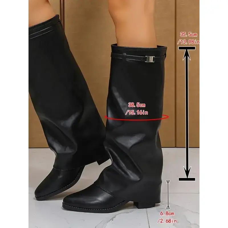 Women's Leather Foldover Shark Classic Buckle High Top Boots, Fashionable Design for Trendy Women, Durable Comfortable Shoes, Footwear Boot
