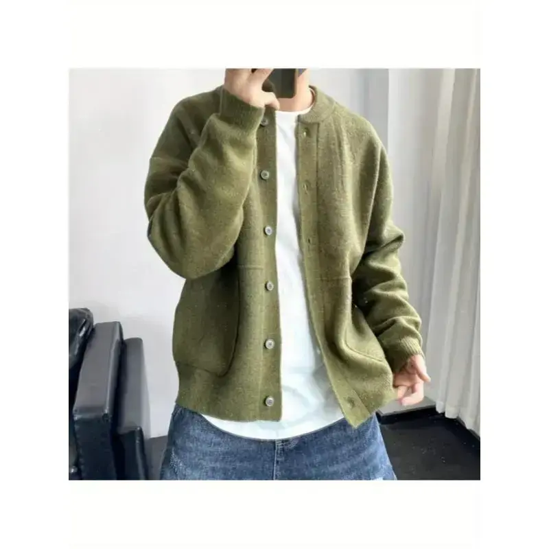 Fashion men's wear?? The Size Runs Slightly Small But Is Unisex Thickened Cardigan Sweater Jacket- Warm Winter Coat, Loose Long Sleeve Button Closure Design, Soft Light Beige Fabric Suitable For Daily And Formal Outfits- Urban Street Style O