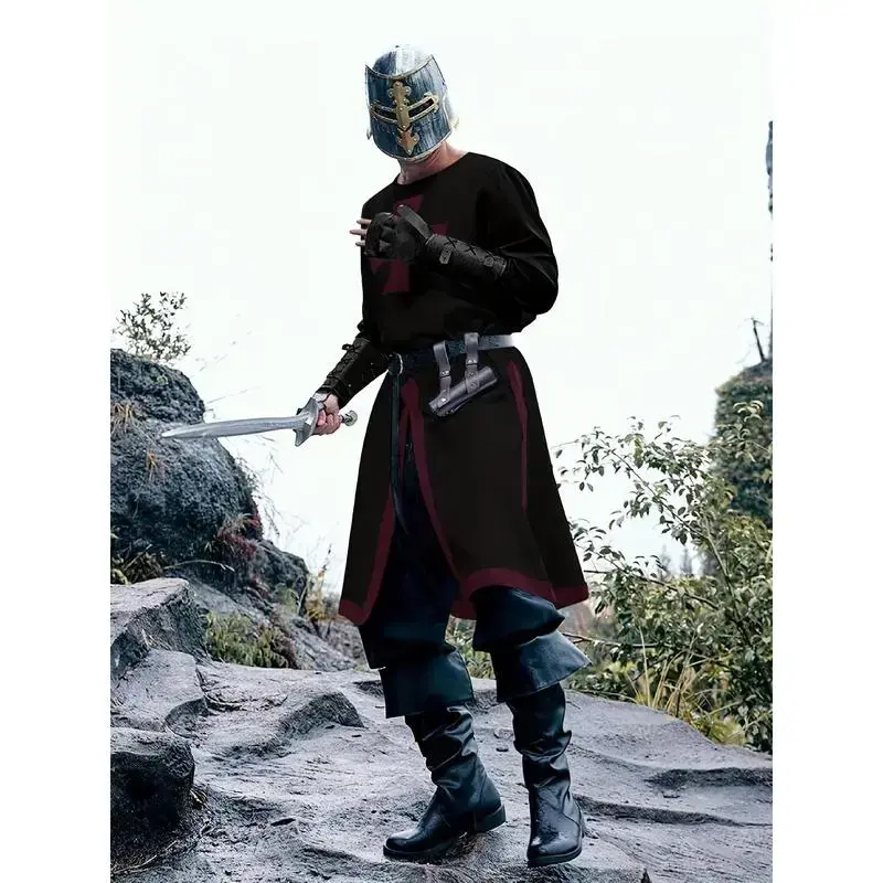 Men'S Crusader Tunic Costume - Medieval Templar Knight Long Sleeve p with Red Cruciform, Black & Red Design, Loose Fit for Christmas Cosplay, Renaissance Fairs, and Casual Wear, Cosplay Costume| Templar Knight Outfit| Detailed Texture, Cosplay-T Maid nail
