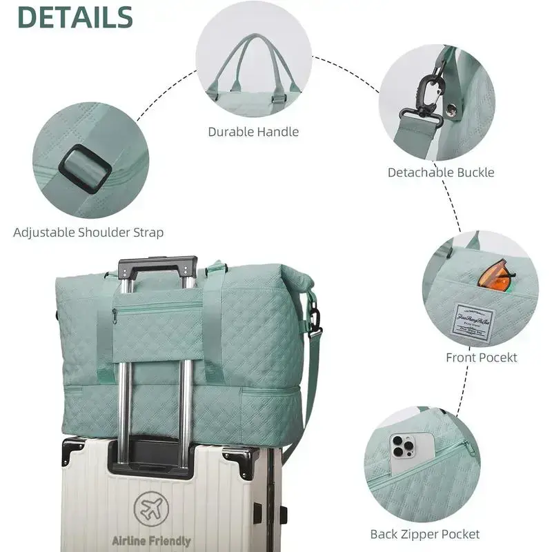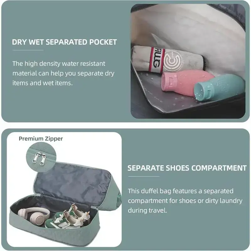 Perfect for Travel and Gym ✨ WeekenderBagsforWomenTravelDuffleBagwithShoeCompartment is your ideal companion for travel and gym outings. This duffel bag features a shoe compartment, ensuring your footwear stays organized. Perfect for overnight stays or carry-on trips, it's versatile and practical. 🌟 Versatile and Functional Your All-In-One Solution This duffel bag combines travel and gym needs. It's a versatile bag that meets your requirements for both travel and gym use. Stay organized and prepared with this weekender bag. 🚗