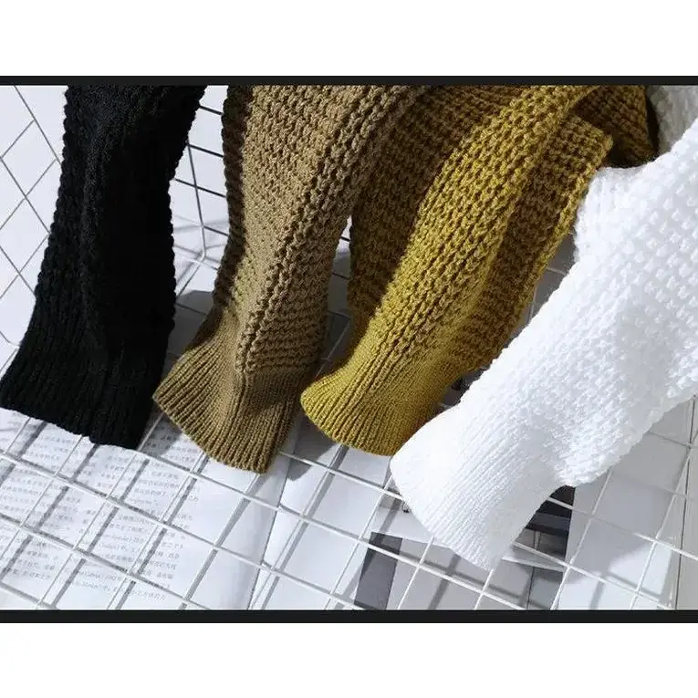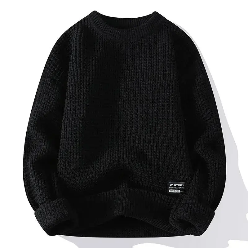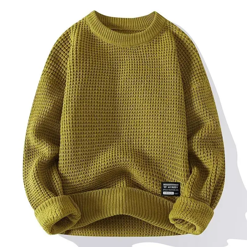 Thick Needle Round Neck Beige Men's Long Sleeve Loose Fit Mock Neck Retro Classic Knitted Sweater for Casual Wear Knitwear Menswear