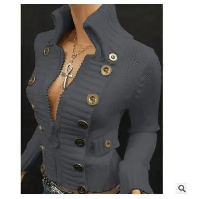 Composition: 42% Acrylic,30% Polyester,28% PolyamideMaterial: AcrylicLength: Short LengthSleeve Length: Long SleeveDetails: ButtonPattern: Solid colorSheer: NoSeason: AllOperation Instruction: Hand wash or professional dry cleanStyle: CasualFit Type: SkinnyFabric Elasticity: Mid ElasticityPrinting Type: No PrintingWeaving Method: Knit FabricCollar Style: Mandarin CollarItem ID: YB5179369Origin: Guangdong,China