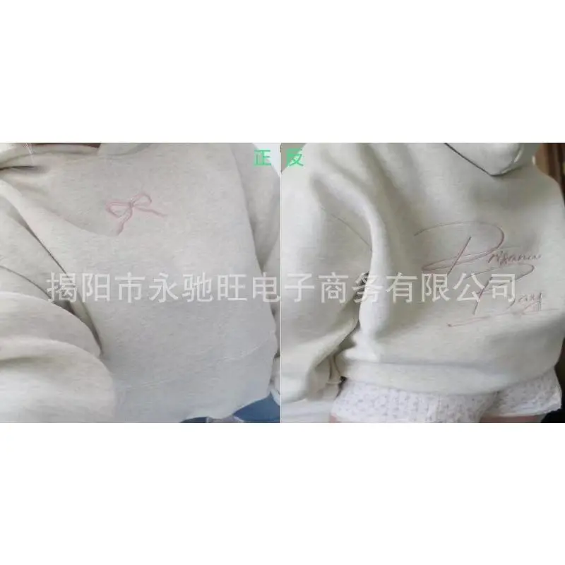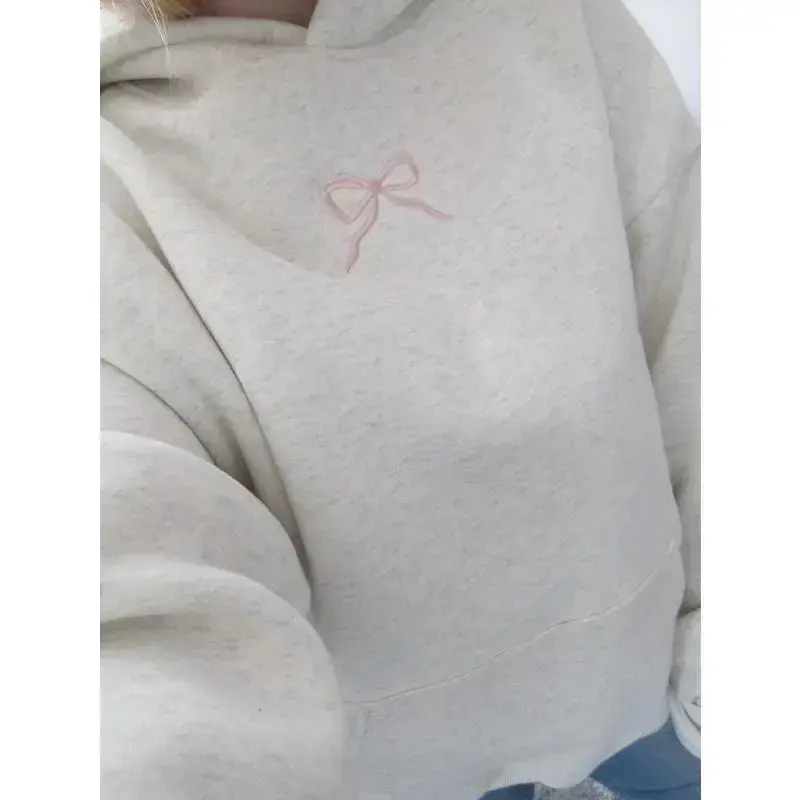 Bowknot Hoodie Retro Trend Simple Floral Letter Bowknot Pattern Gray Pullover Sweater Top Embroidered Hoodie Hoodie Oversized Acid Wash Hoodie