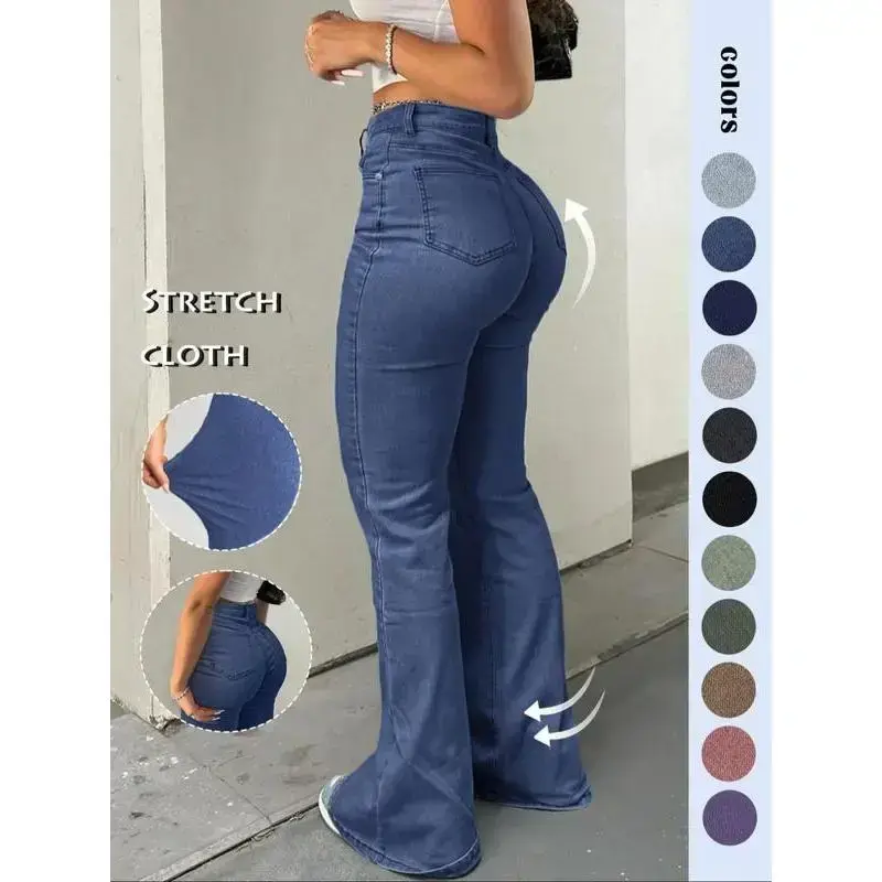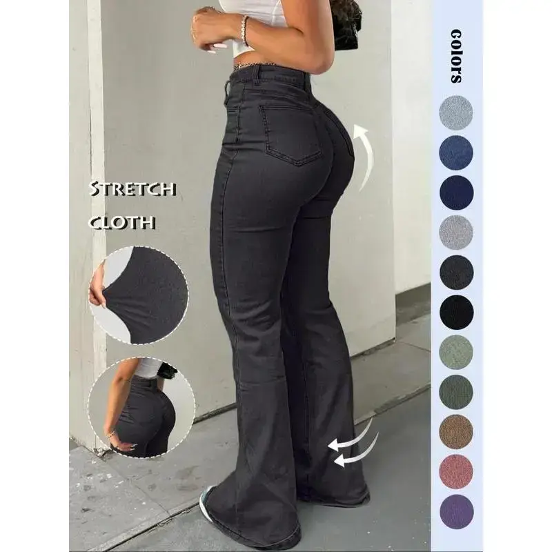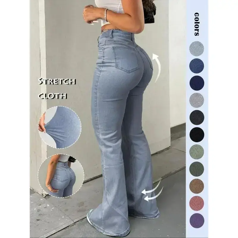 Women's Plain High Waist Flare Leg Jeans, Bell Bottoms Casual Pants Button Fly Pocket Design Bell Bottom Denim Trousers for Fall & Winter Flared Pants, Women's Bottoms for Daily Wear, Gift Set