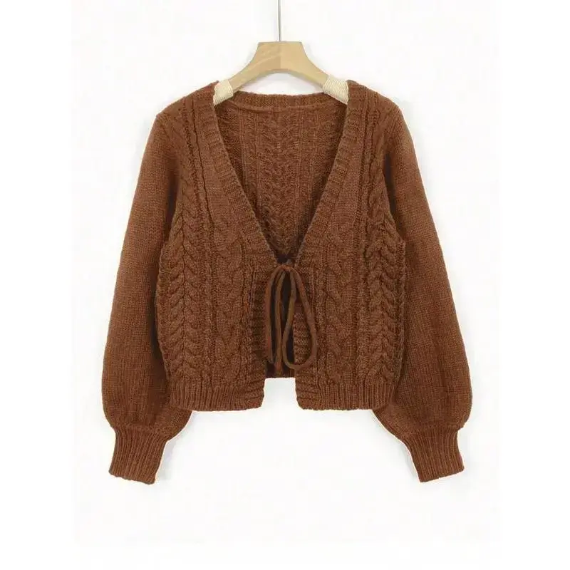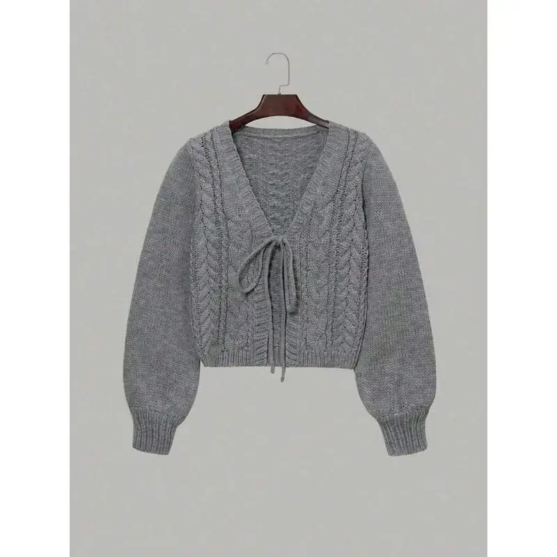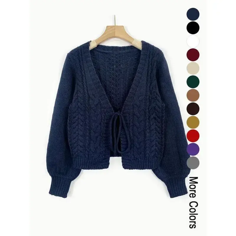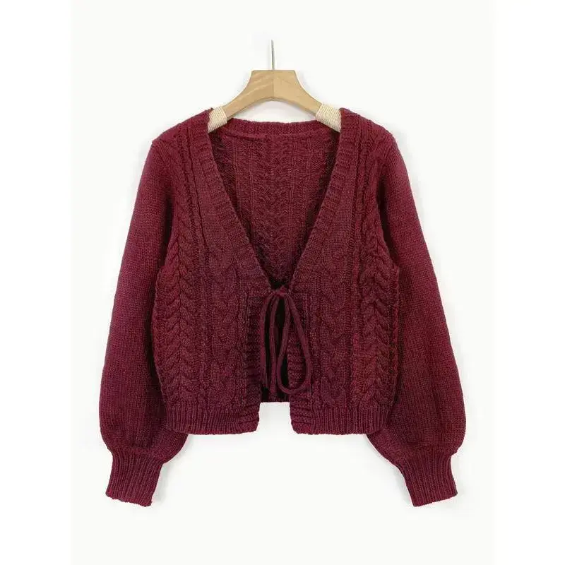 Weaving Method:KnittingComposition:AcrylicDesign:Tie FrontWashing Instructions:Machine WashableFit:Loose-FittingStyle:CasualSeason:SpringSleeve Type:Drop ShoulderSleeve length: long sleeveNeckline:V NeckQuantity Per Pack:1Region Of Origin:ChinaPattern:Plain,Butterfly Pattern:Plain,ButterflyRegion Of Origin:ChinaQuantity Per Pack:Neckline:V NeckSleeve length: long sleeveSleeve Type:Drop ShoulderSeason:Spring&FallStyle:CasualFit:Loose-FittingWashing Instructions:Machine WashableDesign:Tie FrontComposition:AcrylicWeaving Method:Knitting [Lantern Sleeves]: Features distinctive lantern sleeves that add a flair, setting it apart in the category of open cardigans. [Moderate Fabric Thickness]: Crafted with a moderate fabric thickness, suitable for both spring and fall, allowing for year-round wear. [Loose Fit]: Designed with a loose fit to provide ease of movement and a relaxed silhouette, enhancing casual wear. [Plain Pattern]: Showcases a plain pattern, making it a versatile piece that can easily coordinate with various outfits. [V-Neck Opening]: The V-neck opening adds dimension and enhances breathability, offering a comfortable fit without compromising aesthetics.