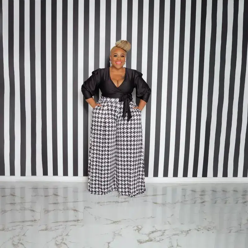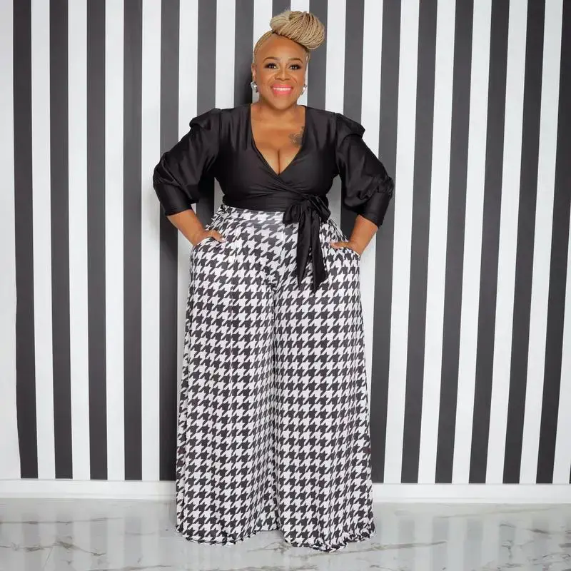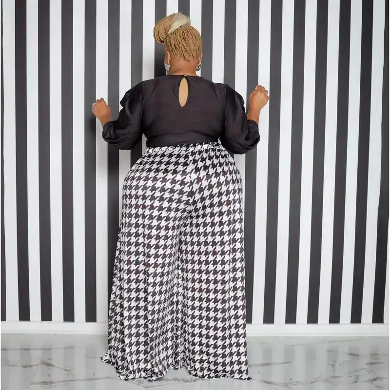New style houndstooth plus-size wide-leg pants for women's bottom wear Womenswear Comfort Casual Shirt Trouser Fashion Formal Loose