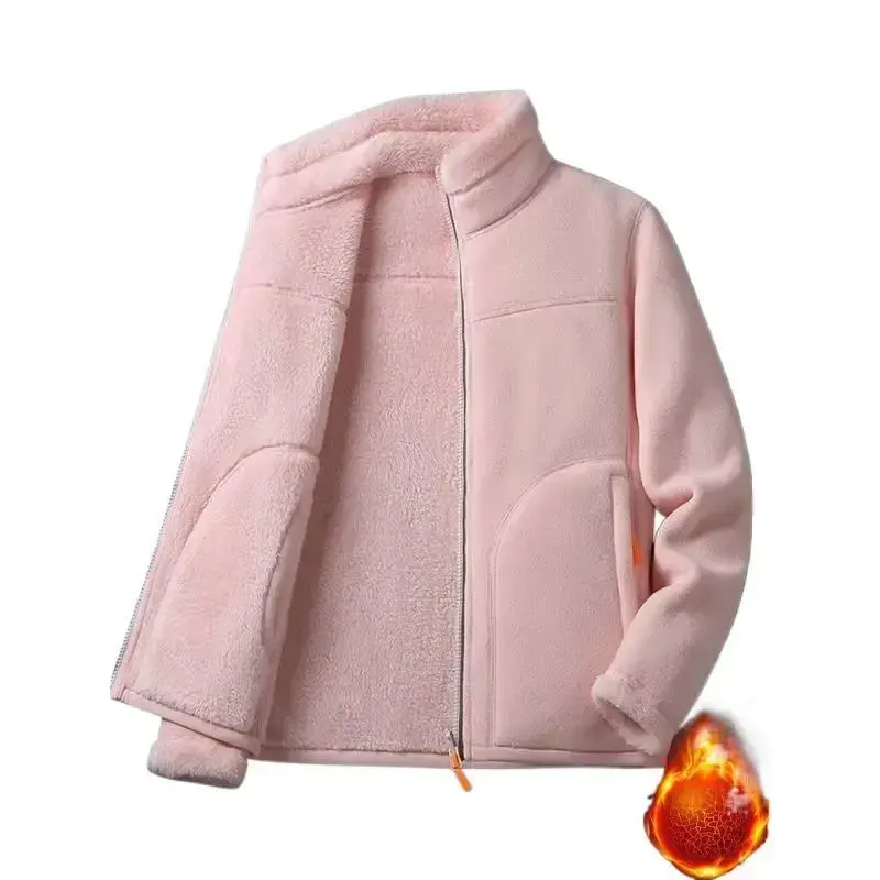 Women's Winter Windproof Jacket with Coral Fleece Lining & Stand Collar - Full-Zip Outdoor Sport Coat, Machine Washable Thick Insulated Shell for Skiing, Snowboarding, Hiking - Soft Warm Casual Winter Jacket, Thermal Fleece Jacket for Women