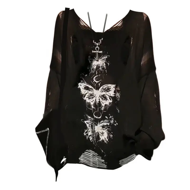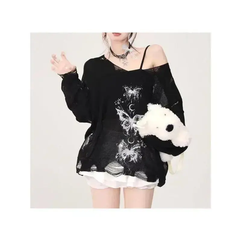 Emotional Style Women's Streetwear Long Sleeve Grunge Aesthetic Akubi Fairy Style T-Shirt Gothic Style Hot Girl Letter Top 2000s Alternative Clothing Women's Summer Womenswear Tshirt Crewneck Casual