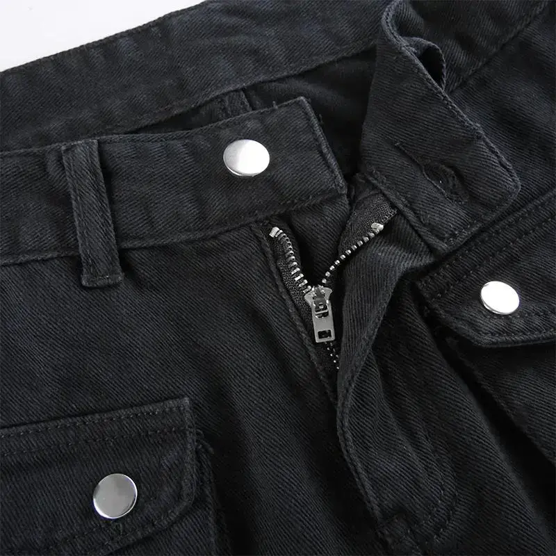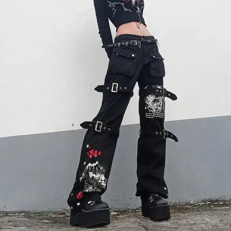 Gothic Black Cargo Pants Capri Women Jeans Long Trousers Y2K Grunge Vintage Hip Hop Punk Harajuku wear