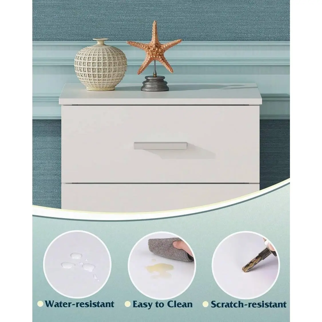 Made of durable WPC material, this nightstand is sturdy, wear-resistant, and built to last for long-term use.Its solid construction ensures stability, while the smooth white surface is easy to clean with a soft cloth, saving you time on daily maintenance.The minimalist design with clean lines and a sleek finish complements any interior style, whether you prefer modern, contemporary, or minimalist decor, adding a subtle decorative touch to your home.