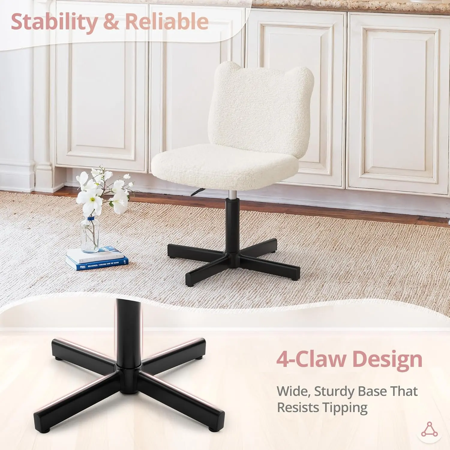 Adjustable Vanity Stool Chair with Girly Bear Ear Wide Back, 360 ° Swivel Vanity Stool for Makeup Room, Upholstered Teddy Velvet Ottoman for Teen Girls, 350lbs, Beige