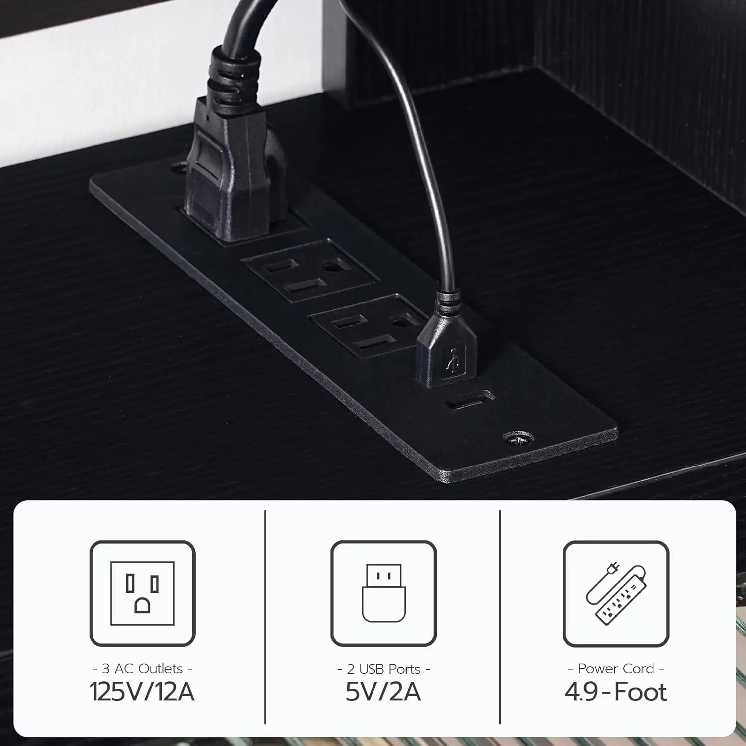Floating TV cabinet, with LED lights and power outlets, suitable for TVs under 65inch, wall-mounted TV stand, modern media console entertainment center, suitable for living room and bedroom, black