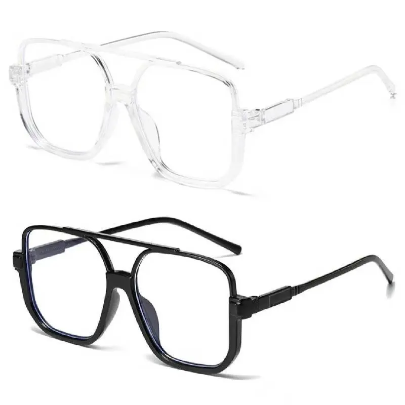 2-Pack Oversized Square Double Bridge Sunglasses,Fashion Y2K American Retro Versatile Casual Sun Glasses,UV Protection Aviator Shades