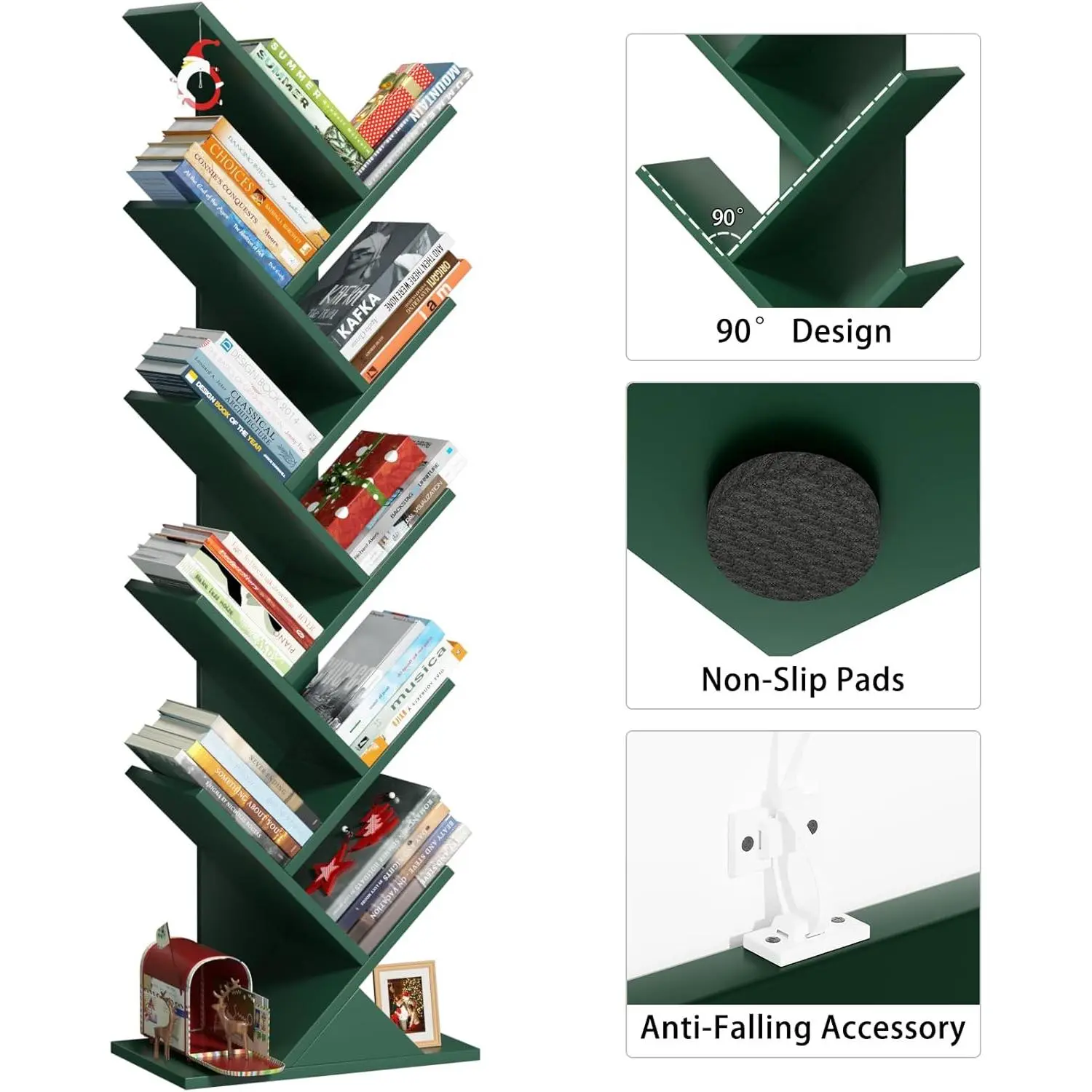 10 Tier Tree Book Shelf, Floor Standing Wood Bookshelf for Narrow Space, Storage Organizer Bookshelves for Books/CDs/Magazine, Bookcase with Shelves for Home Office, Living Room