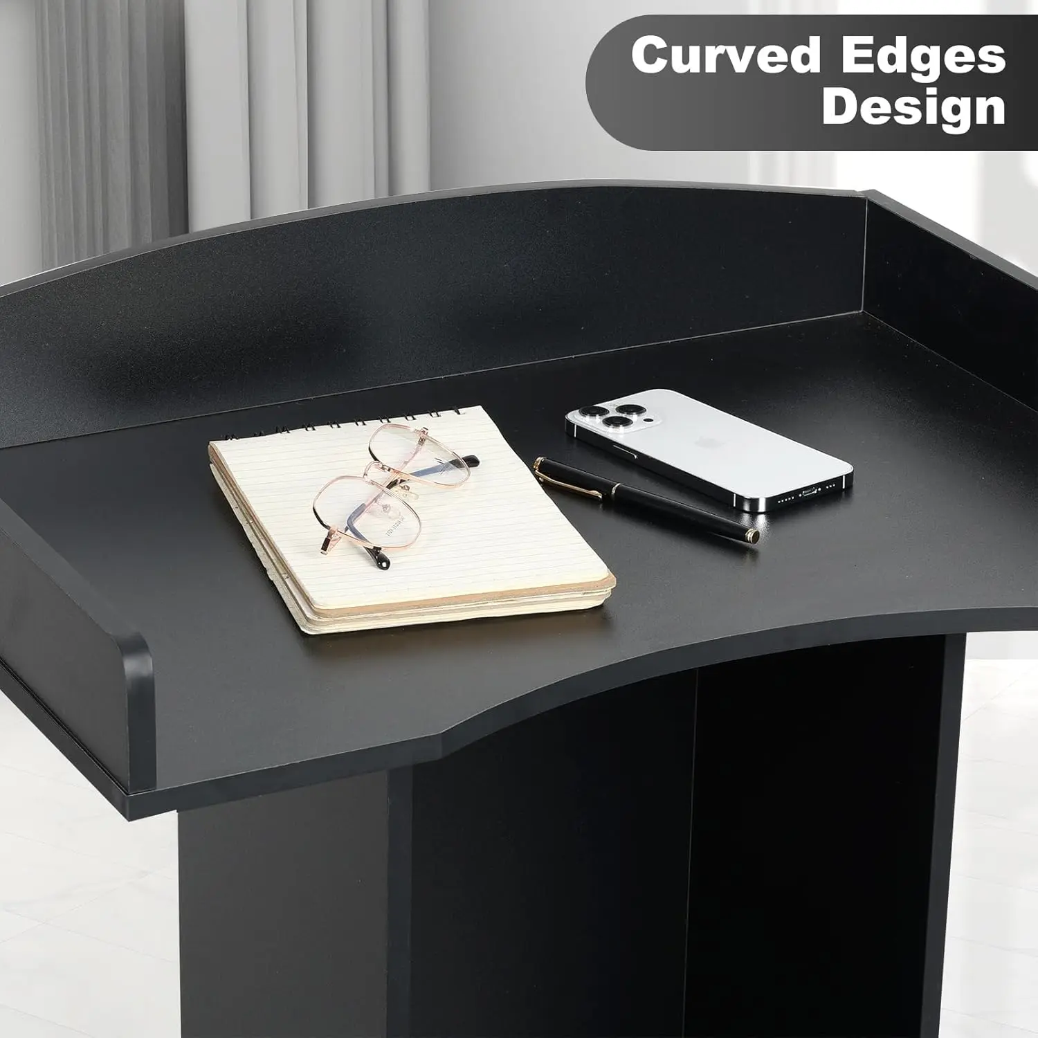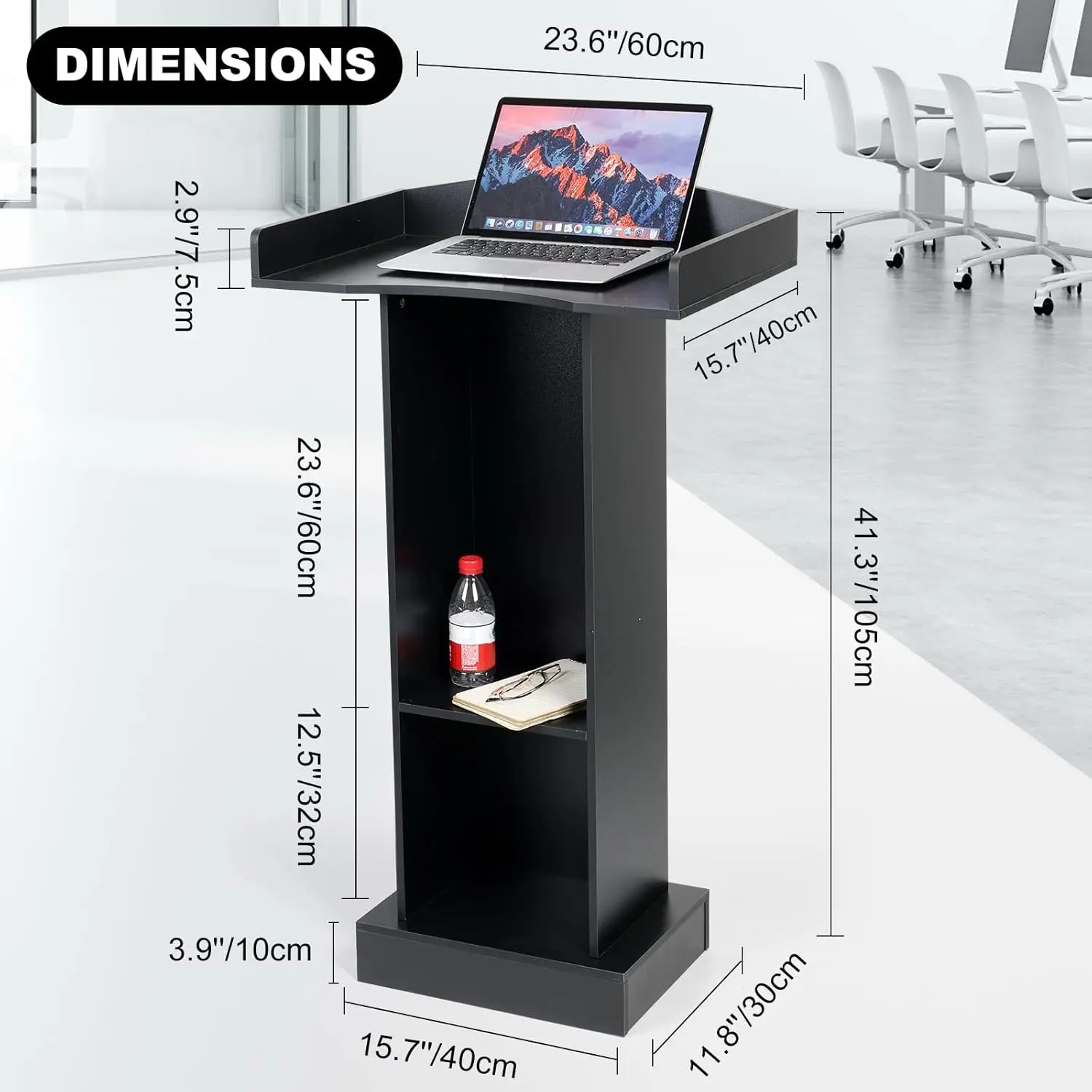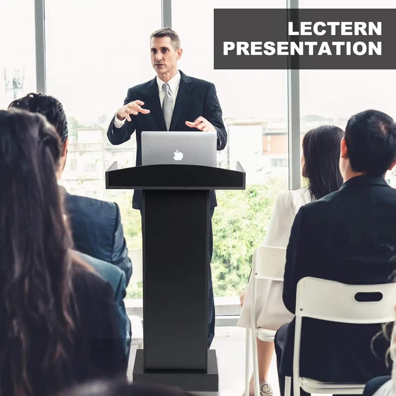Podium Stand for Lectern Presentation Church Classroom, Pulpit with Wooden Heavy Base, Black Podium for Lecture, Wedding Speech