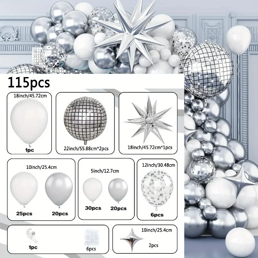 115pcs Themed Balloon Set:White and Silver Party Balloons for Birthday Parties,weddings or Celebrations,themed Event Decorations