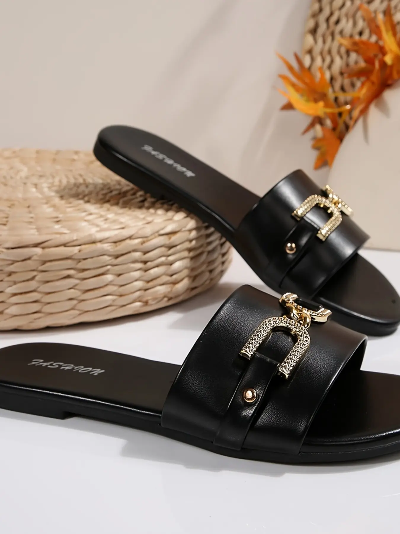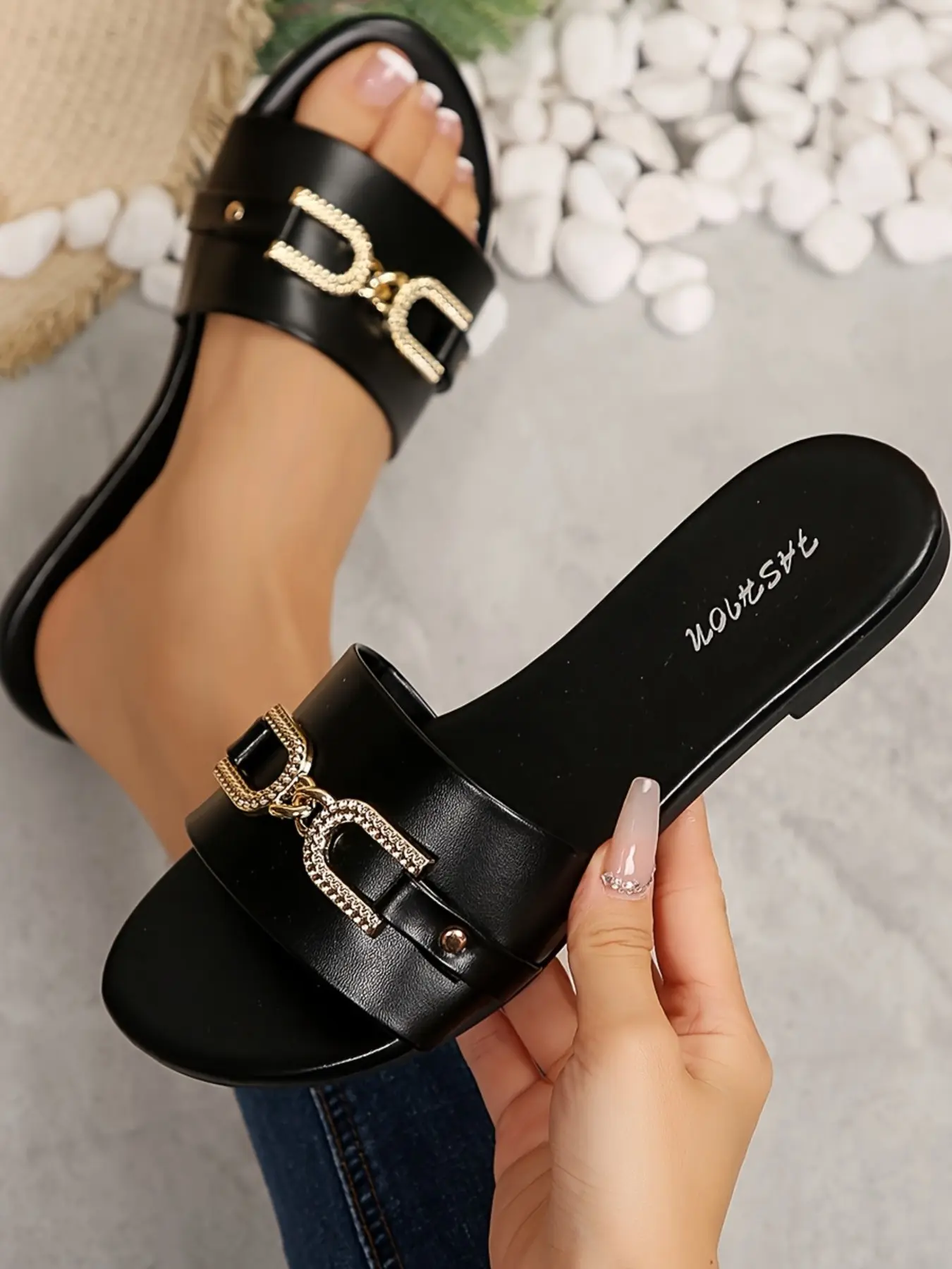 Elegant Sandals, Rhinestone Chain Decoration, Soft Sole, Comfortable, Versatile for Commute, Vacation, Daily Wear, Summer Essential