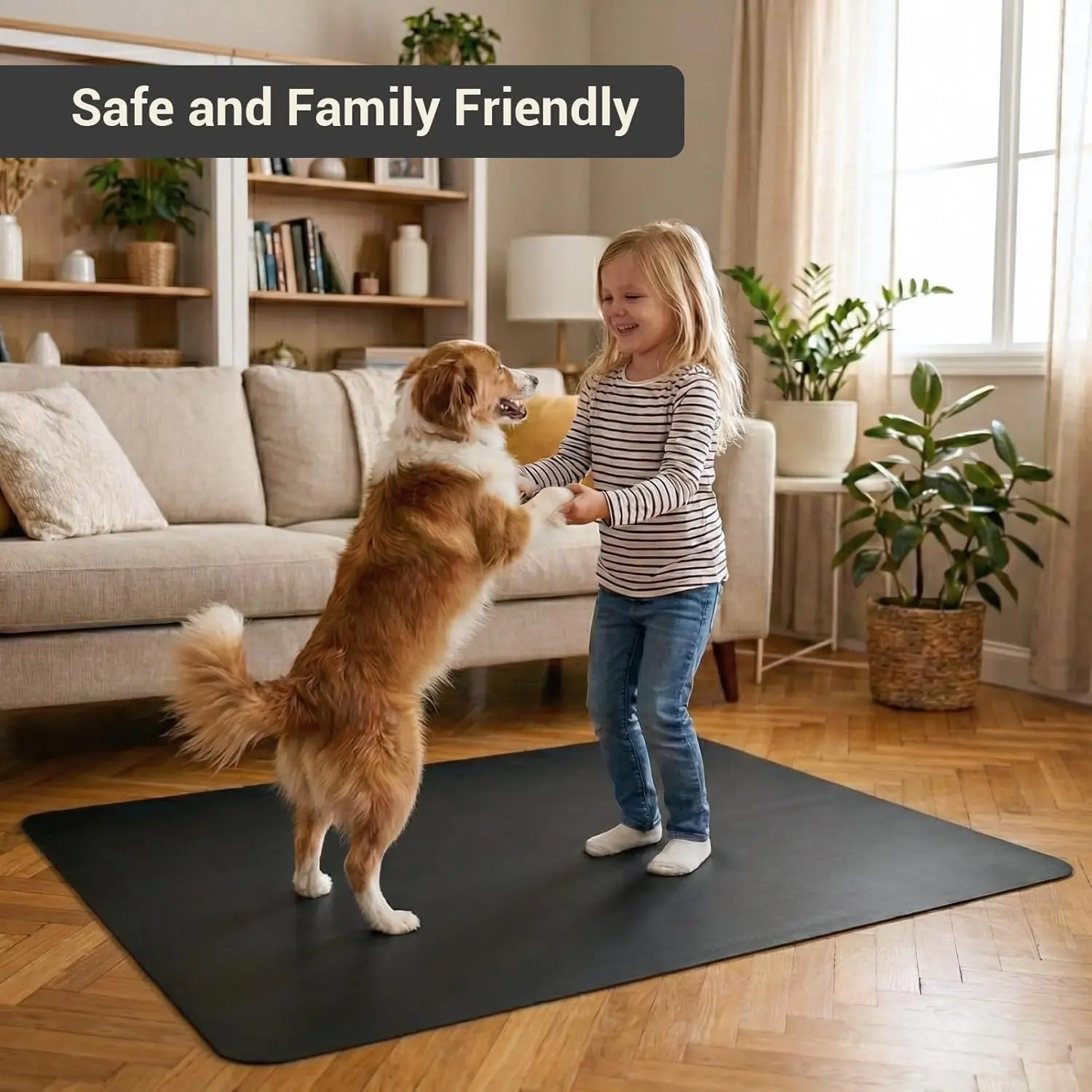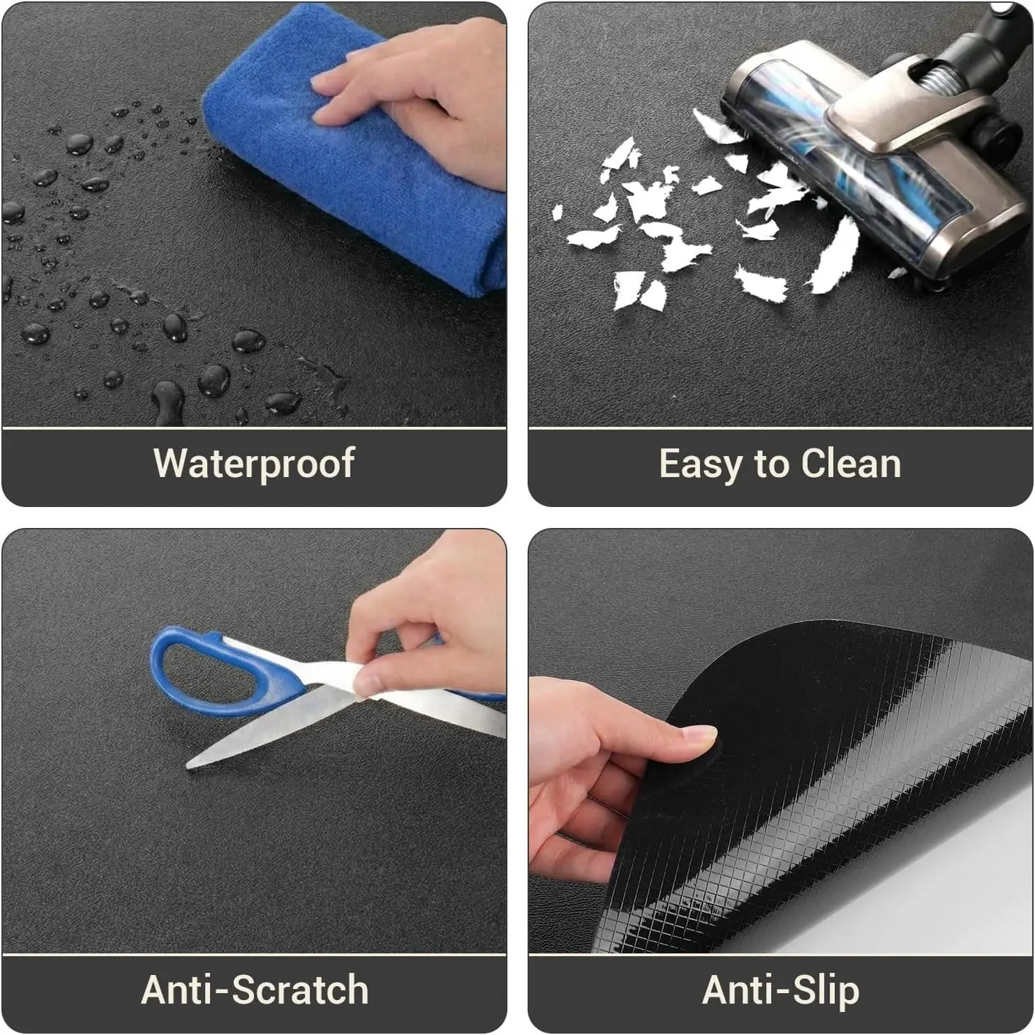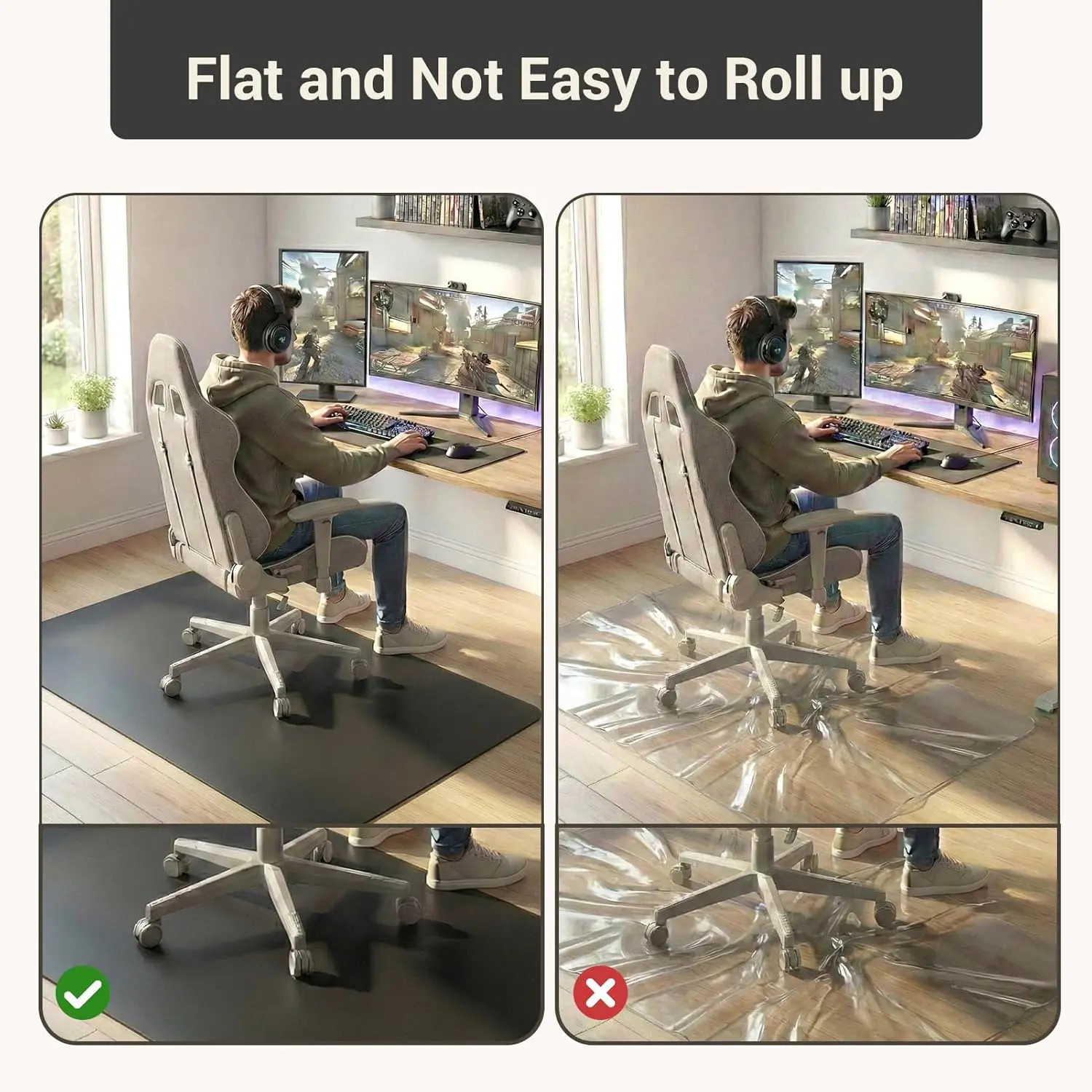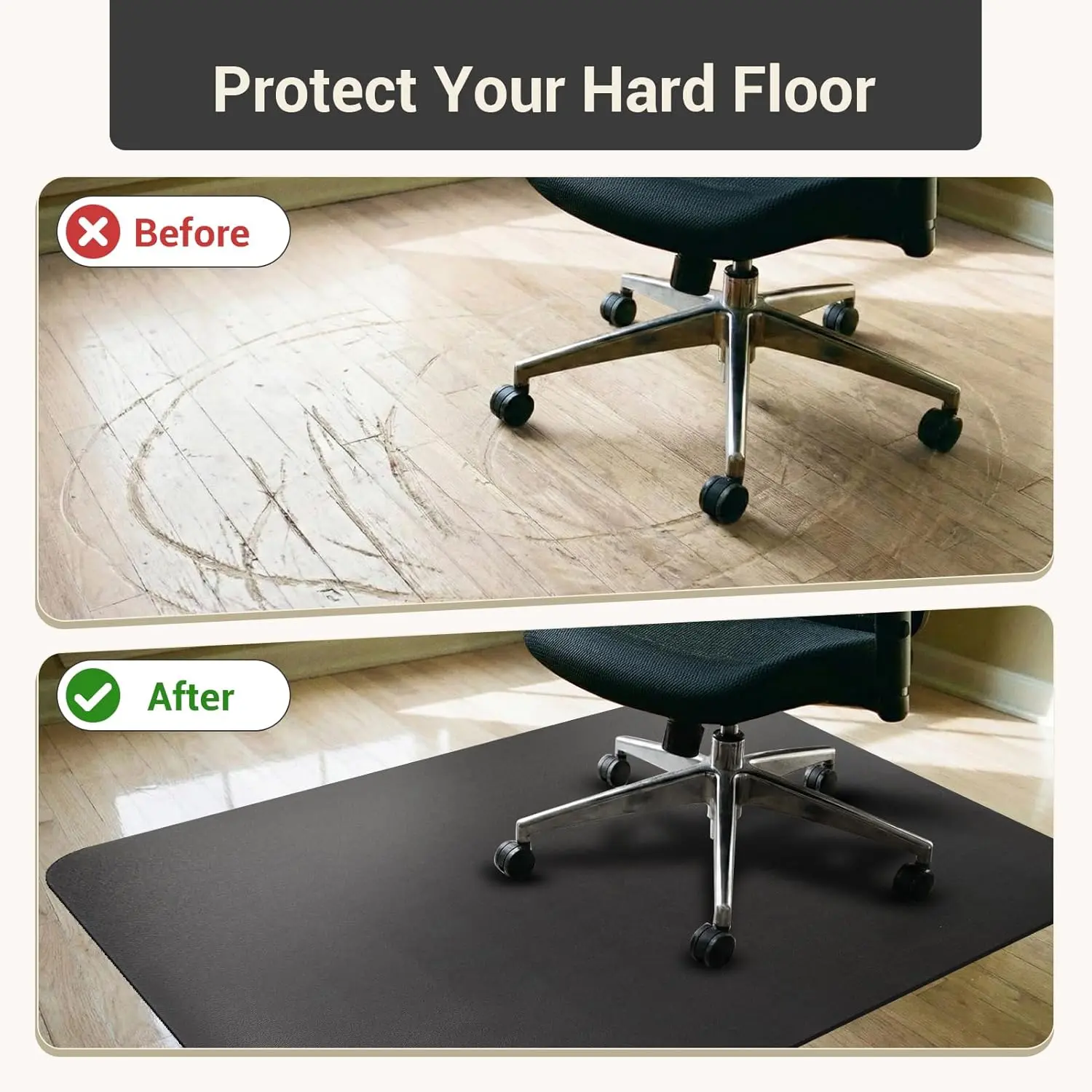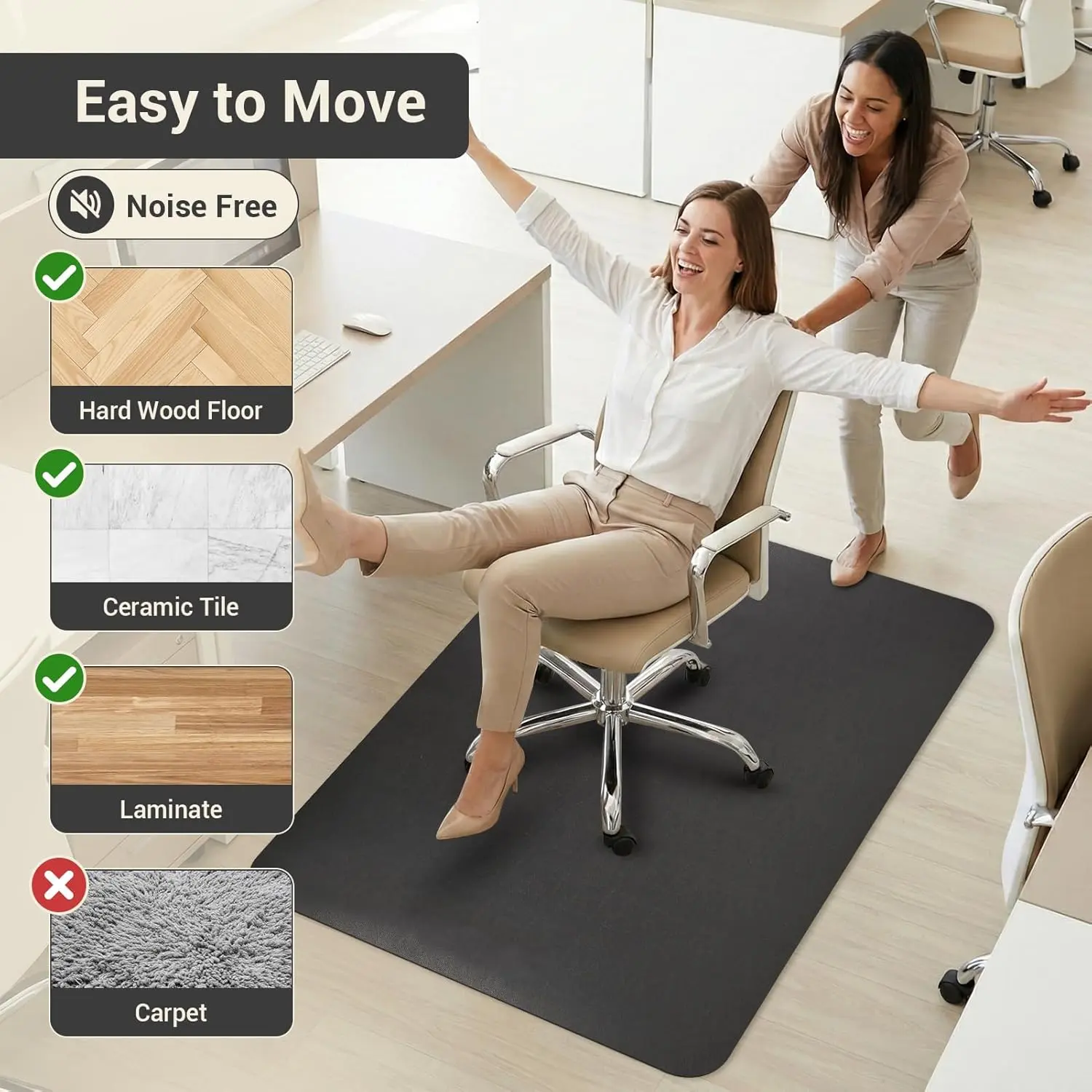 Office Rolling Chair Mat for Hardwood and Tile Floor, Black, Anti-Slip, Non-Curve, Chair Mat Best for Under The Computer Desk, 47 x 35 Rectangular Non-Toxic Plastic Protector, Not for Carpet