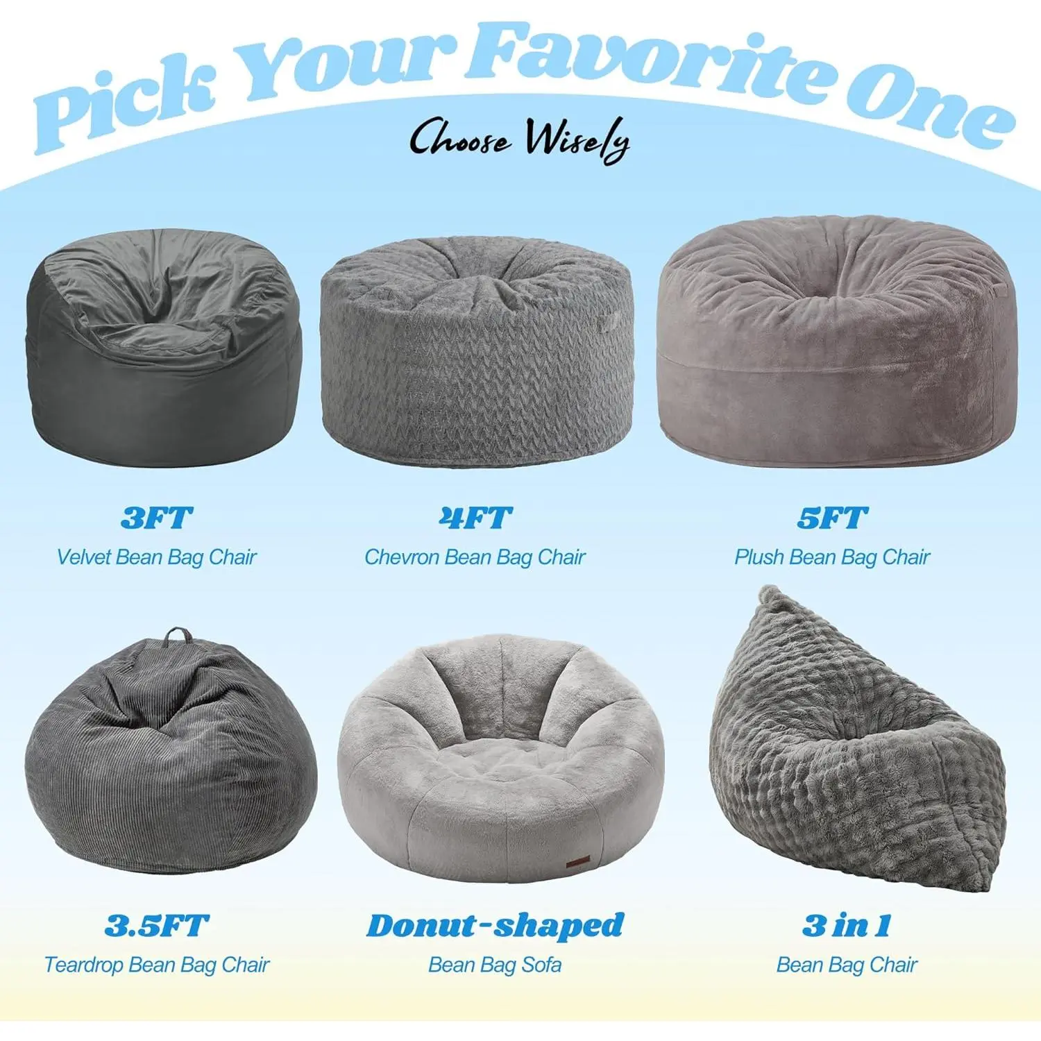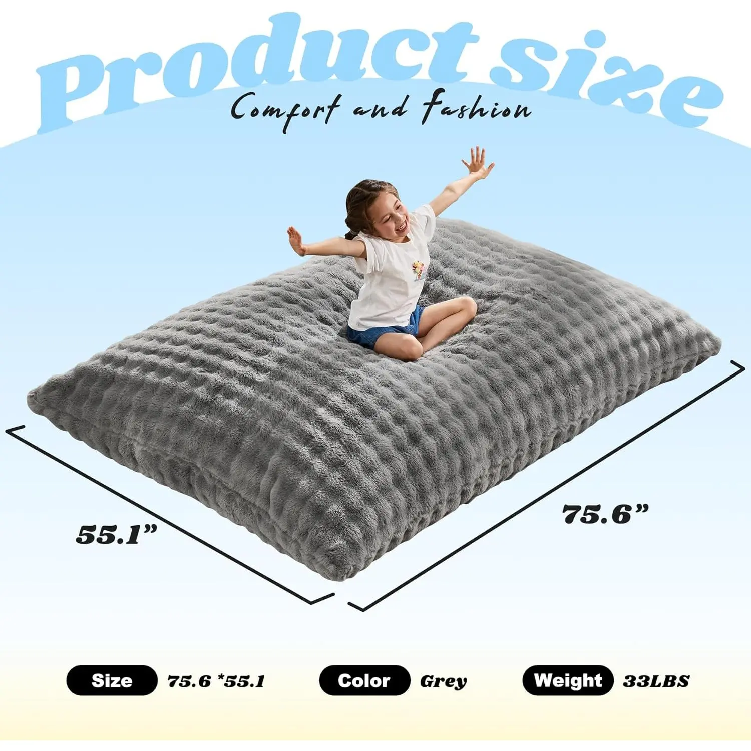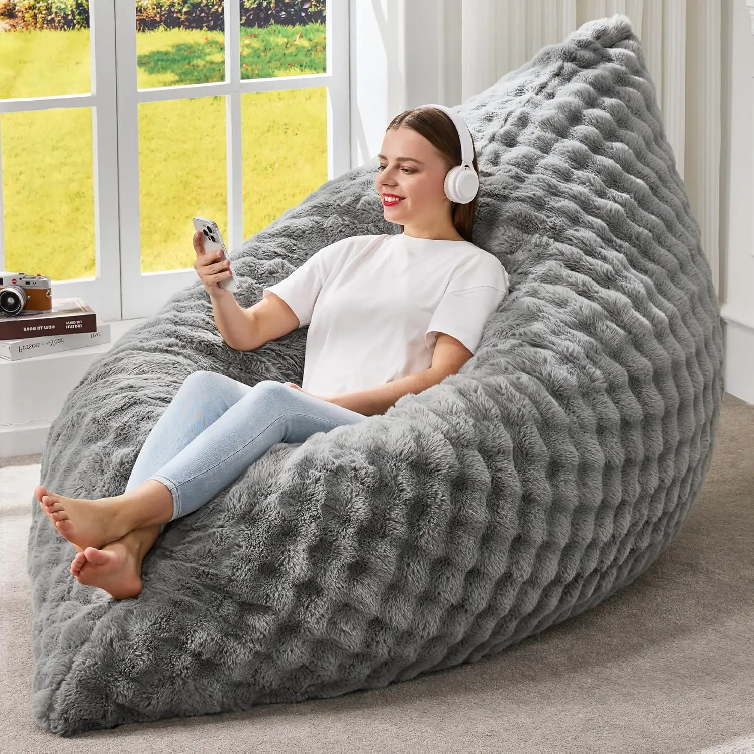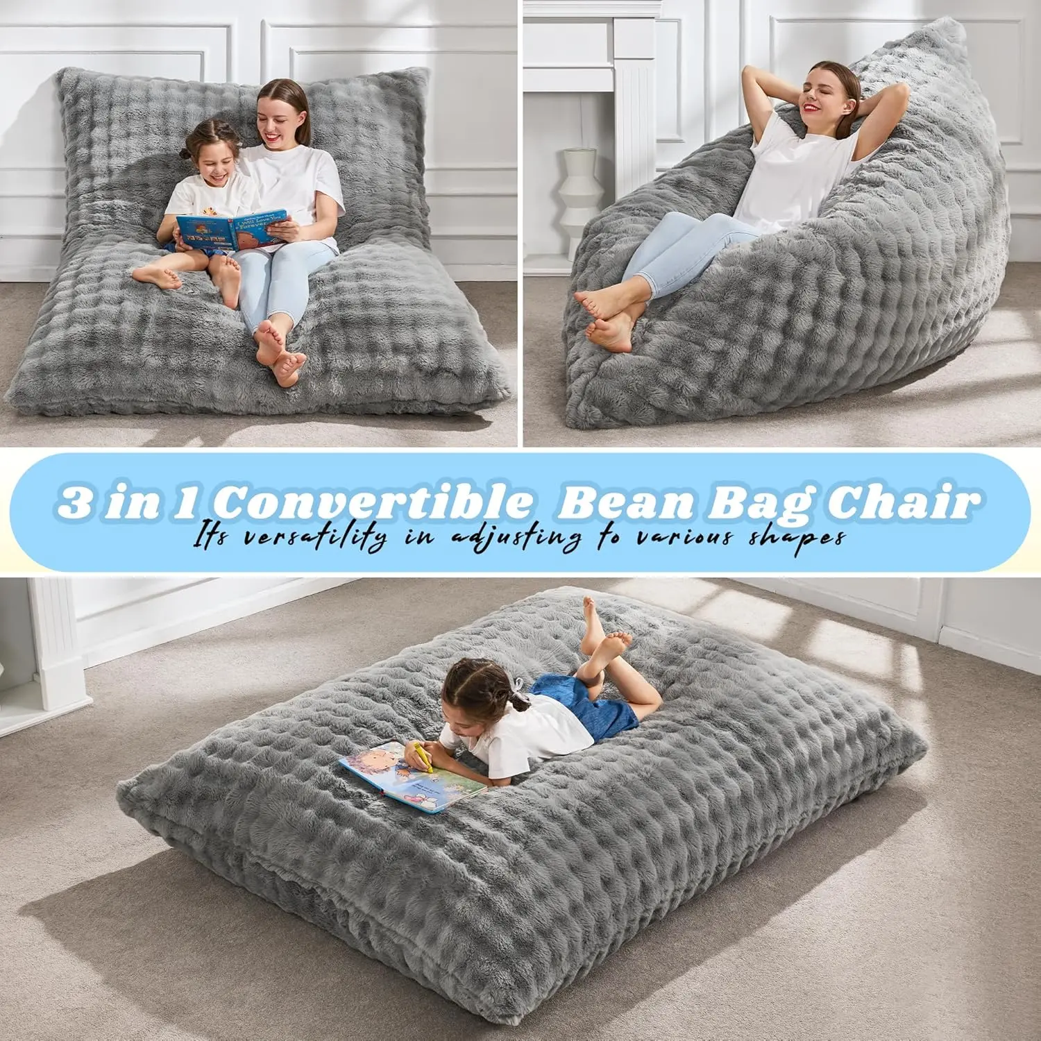 3 in 1 Bean Bag Chair Giant Bean Bag Chairs for Adults with Bubble Cover Convertible Bean Bag Floor Cushion with Machine Washable Cover for Living Room (Bubble Grey)