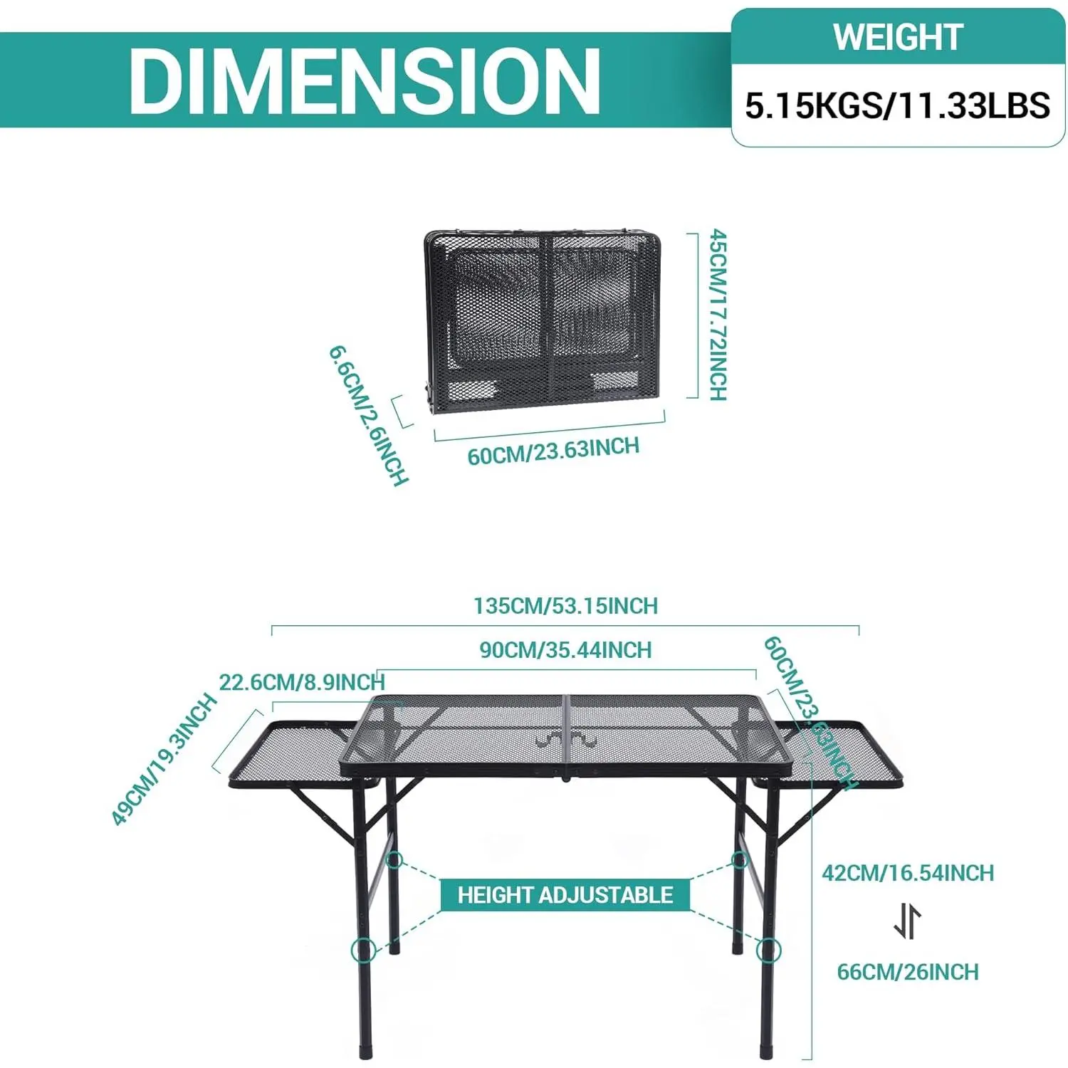 C Folding Grill Table, Camping Table, Tailgate Tables, Grill Tables, Outdoor, Metal Folding Adjustable Height&Width, Mesh Net, Carry Handle
