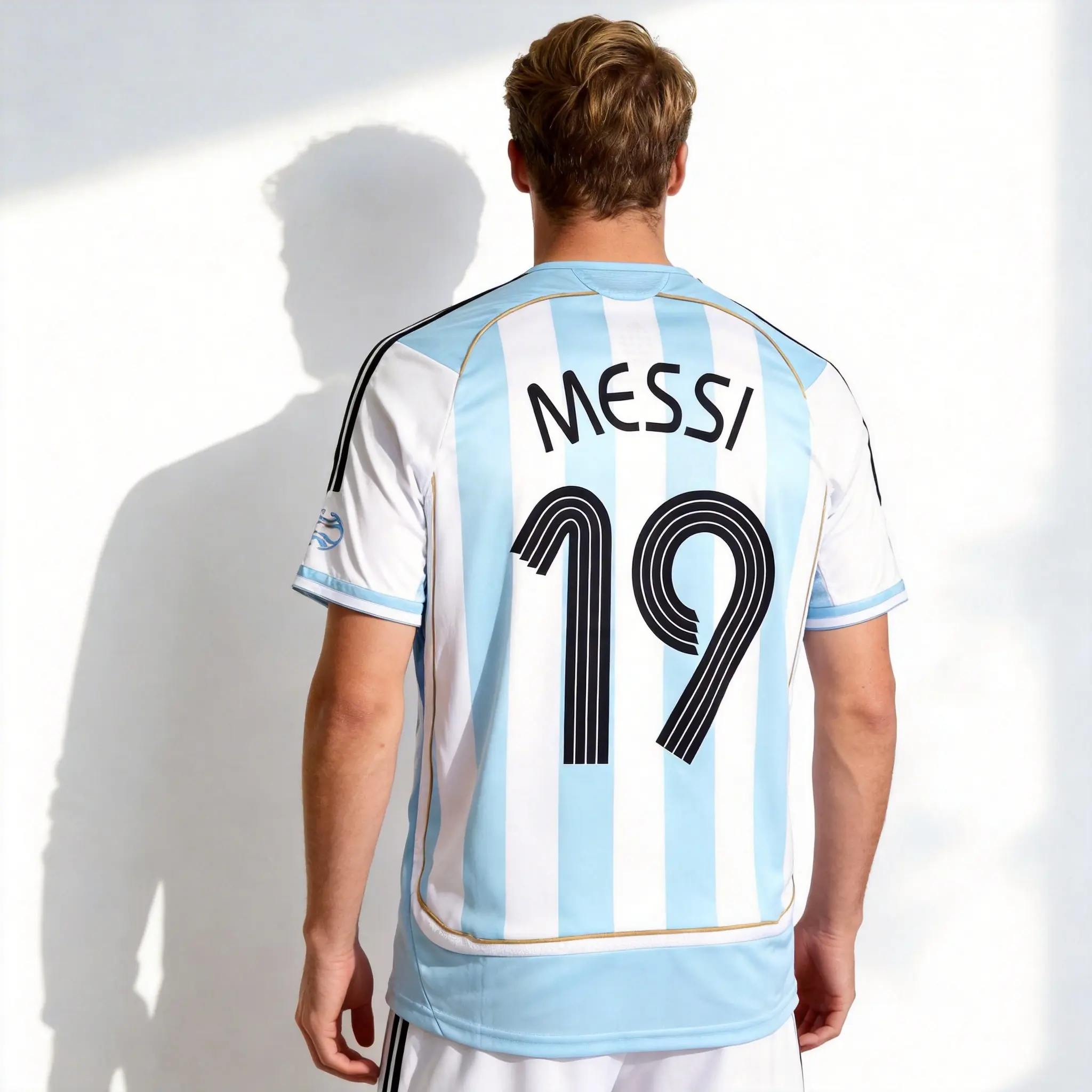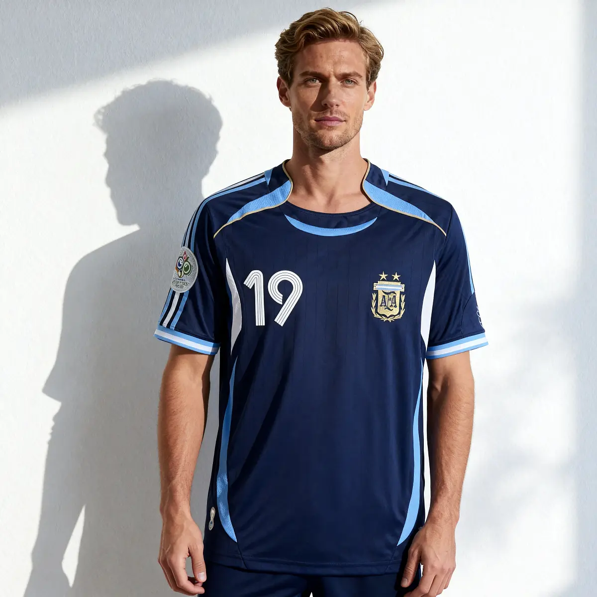 2006 World Cup Argentina Messi 19 Home Blue Soccer Long Sleeve Jersey