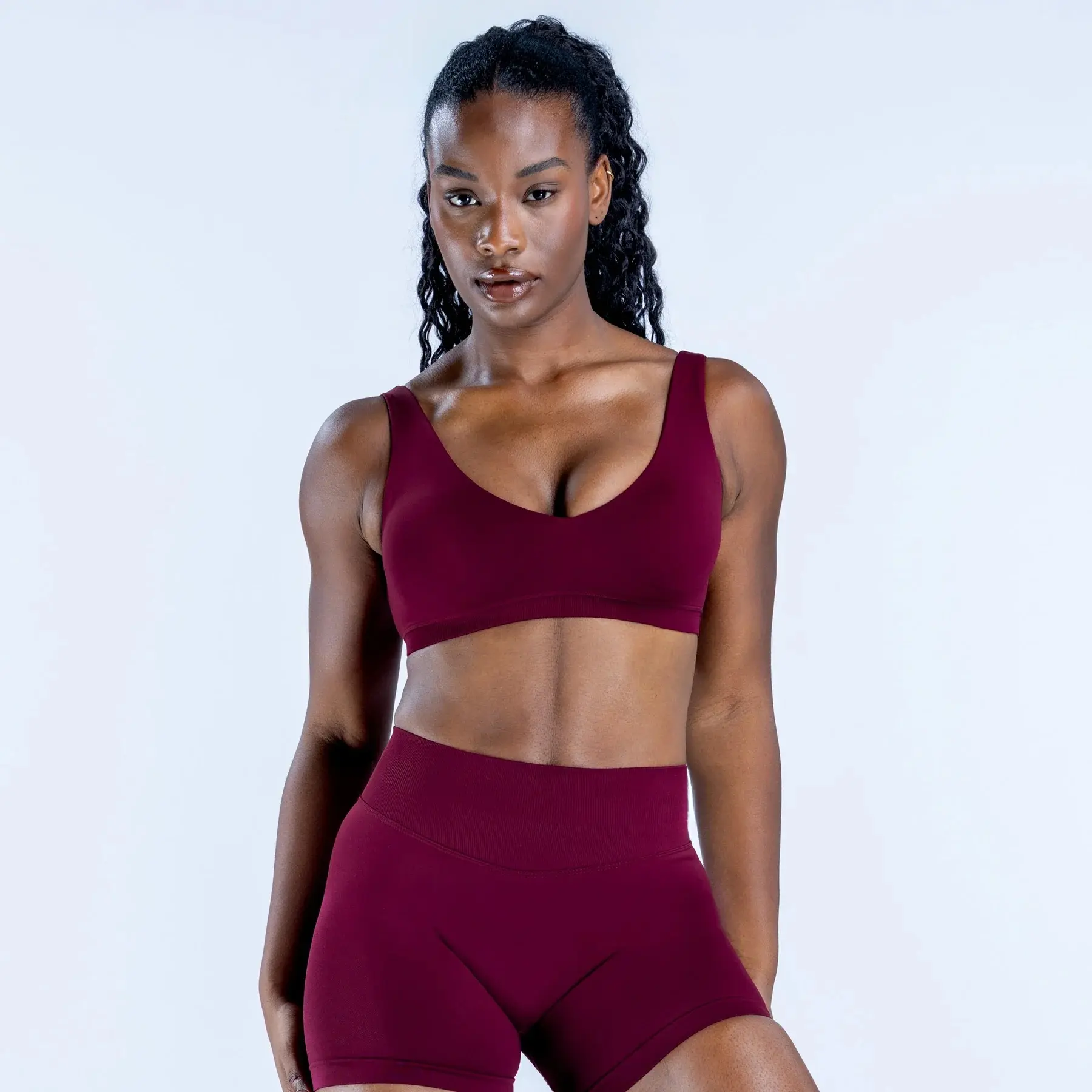 This complete 2 piece seamless set includes a U-back shockproof push up sports bra and matching high waisted leggings. No need to mix and match just grab this set and go for an effortlessly coordinated activewear look.