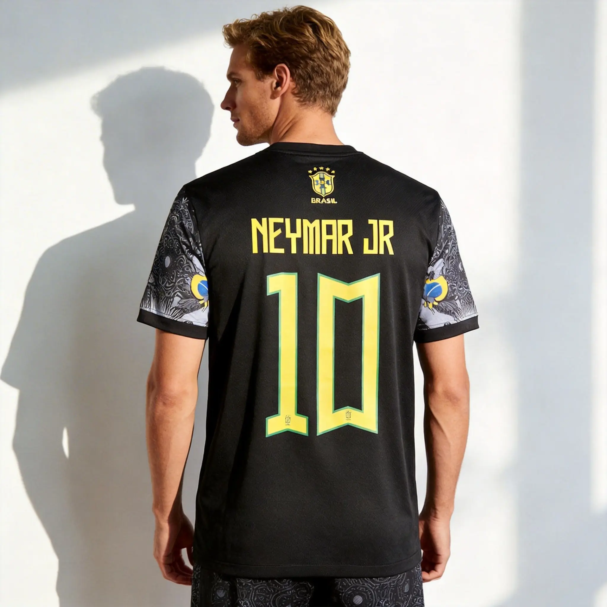 2526 Brazil Black Neymar Jr 10 Short Sleeve Special Edition Redeemer Five Star Soccer Jersey